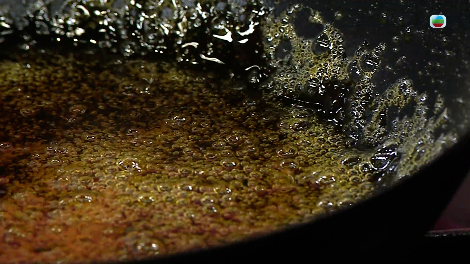 待糖漿的顏色深化到你覺得剛好的程度,就可以加入酒液冷卻增味了,這裡Annie師傅用的是白蘭地橙酒,但也可以改用冧酒等其他酒類、或不含酒精的橙汁、甚至是白開水也可以,目的是快速冷卻糖液防止其繼續焦化。加入酒液時要小心地加入,因為當冷水加進滾糖漿時是真的會炸開的。