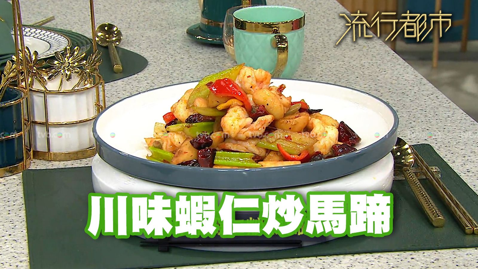 今集《流行都市》「睇餸食飯」環節有 三姐蕭秀香 教大家做「川味蝦仁炒馬蹄」。![]()