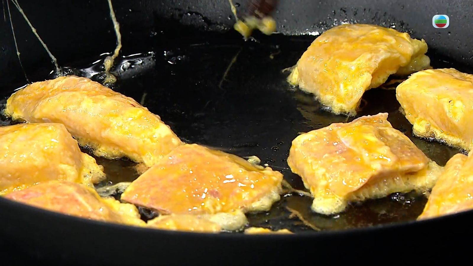 煮麻婆醬時準備魚柳。魚柳先切件下鹽略醃,然後先拍上麵粉,再沾上蛋液,下油鍋中慢火煎至兩面金黃及熟透後罷盤。