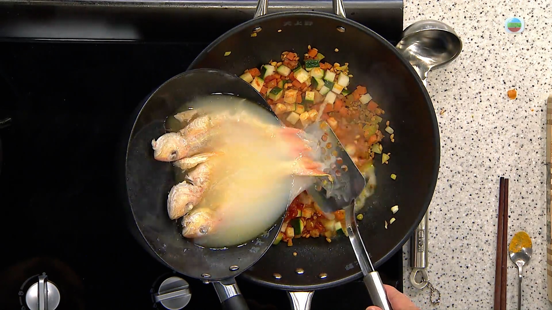 今集《流行都市》「睇餸食飯」環節有 Leslie陳國賓 教大家做「多穀魚湯」。