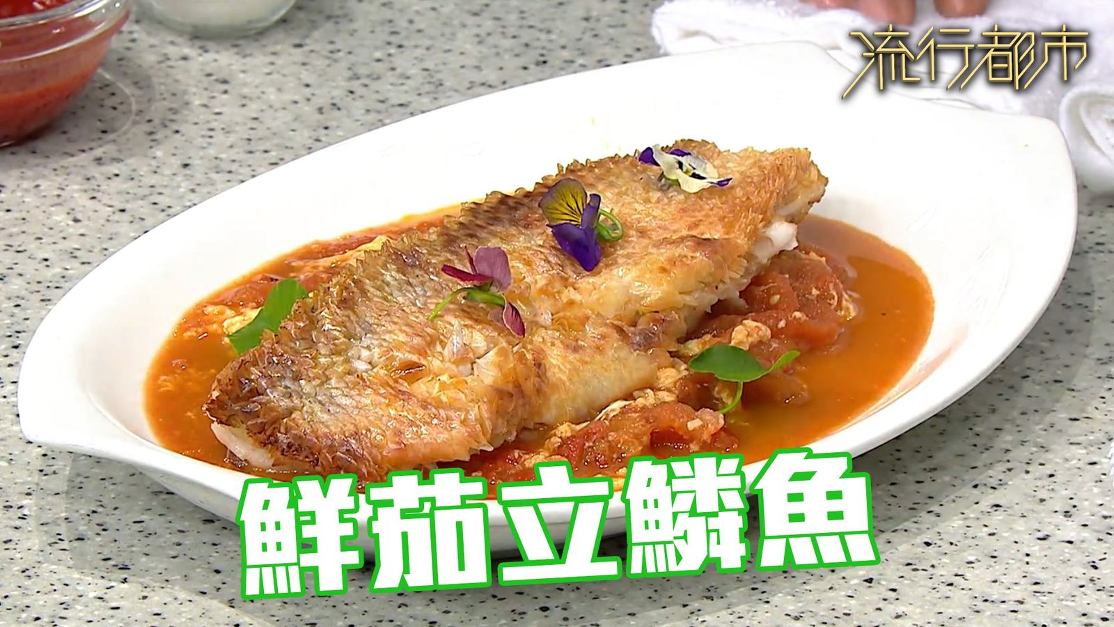 今集《流行都市》「睇餸食飯」環節有廚藝專家葉世昌 示範一道「鮮茄立鱗魚」。
