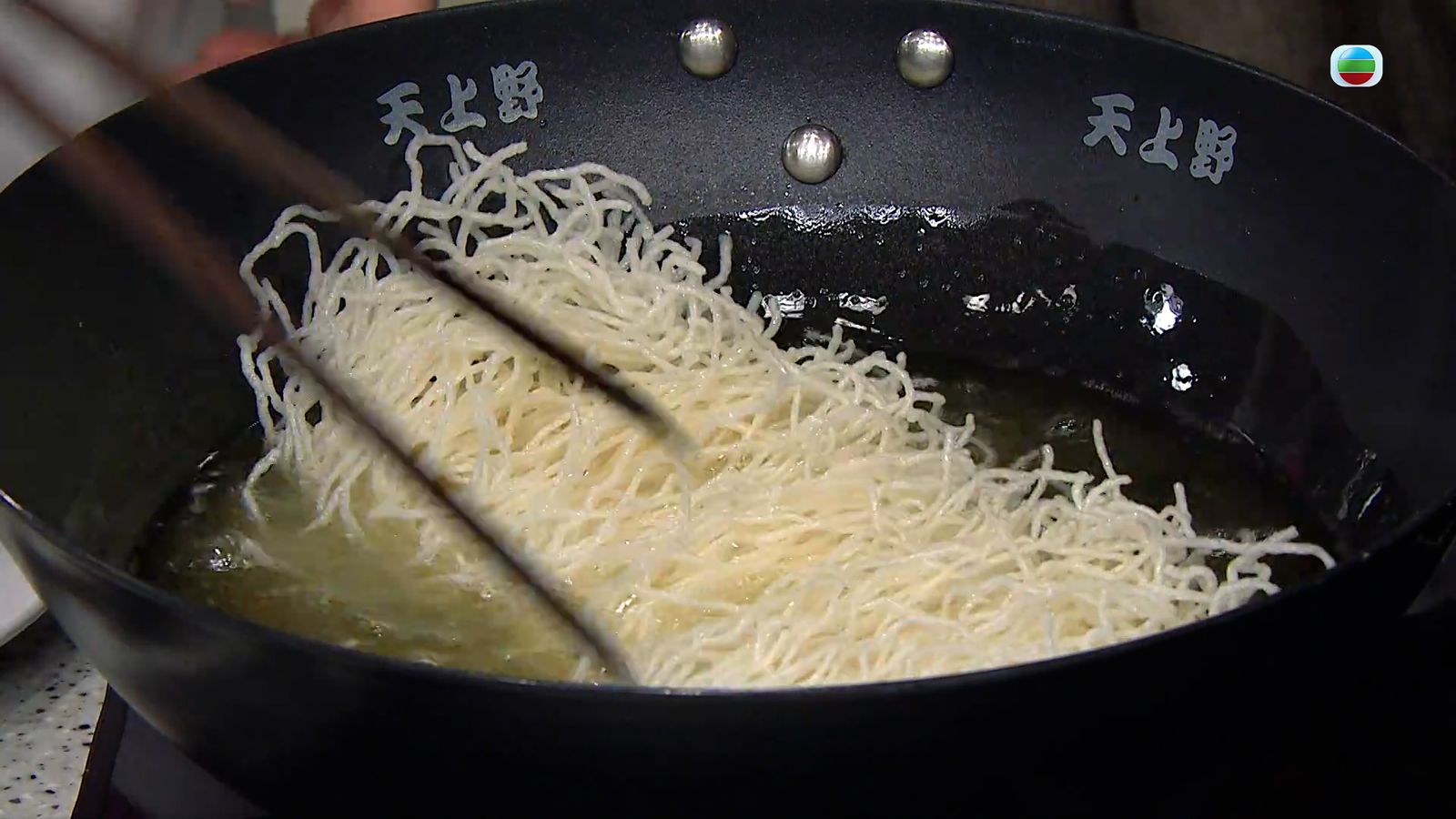 起油鍋,把米粉炸脆撈起,瀝油備用。