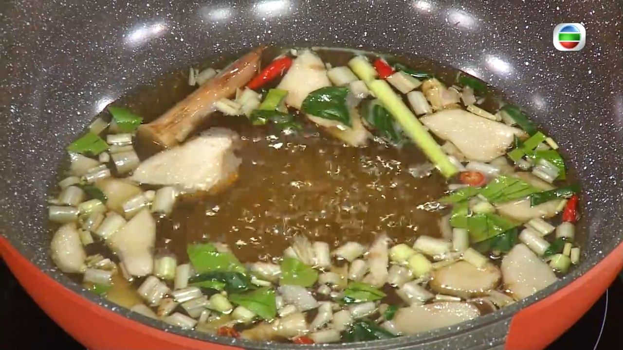 - 南薑、檸檬葉、指天椒、香茅切好,放入鍋中,配上糟滷、雞湯煮至出味。
