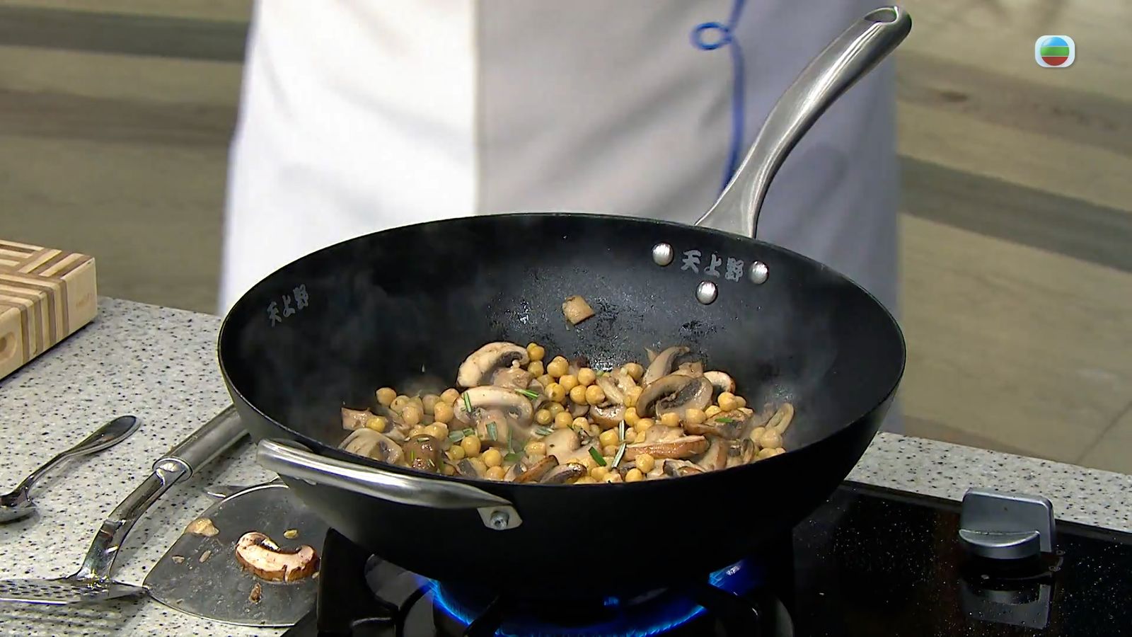 今集《流行都市》「睇餸食飯」環節有 Leslie陳國賓 教大家做「磨菇鷹嘴豆鯖魚」 。![]()