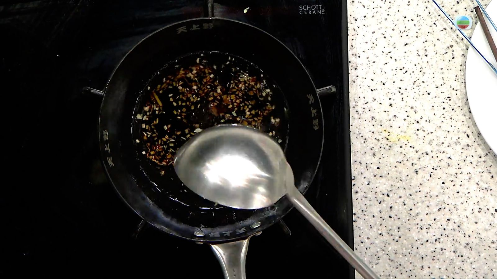 燒一小鍋油,加入薑粒、豉油、糖拌勻。