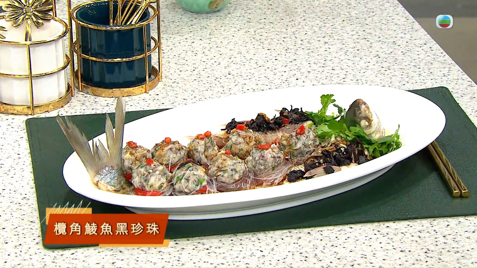 今集《流行都市》「睇餸食飯」環節有 三姐蕭秀香 教大家做「欖角鯪魚黑珍珠」 。![]()