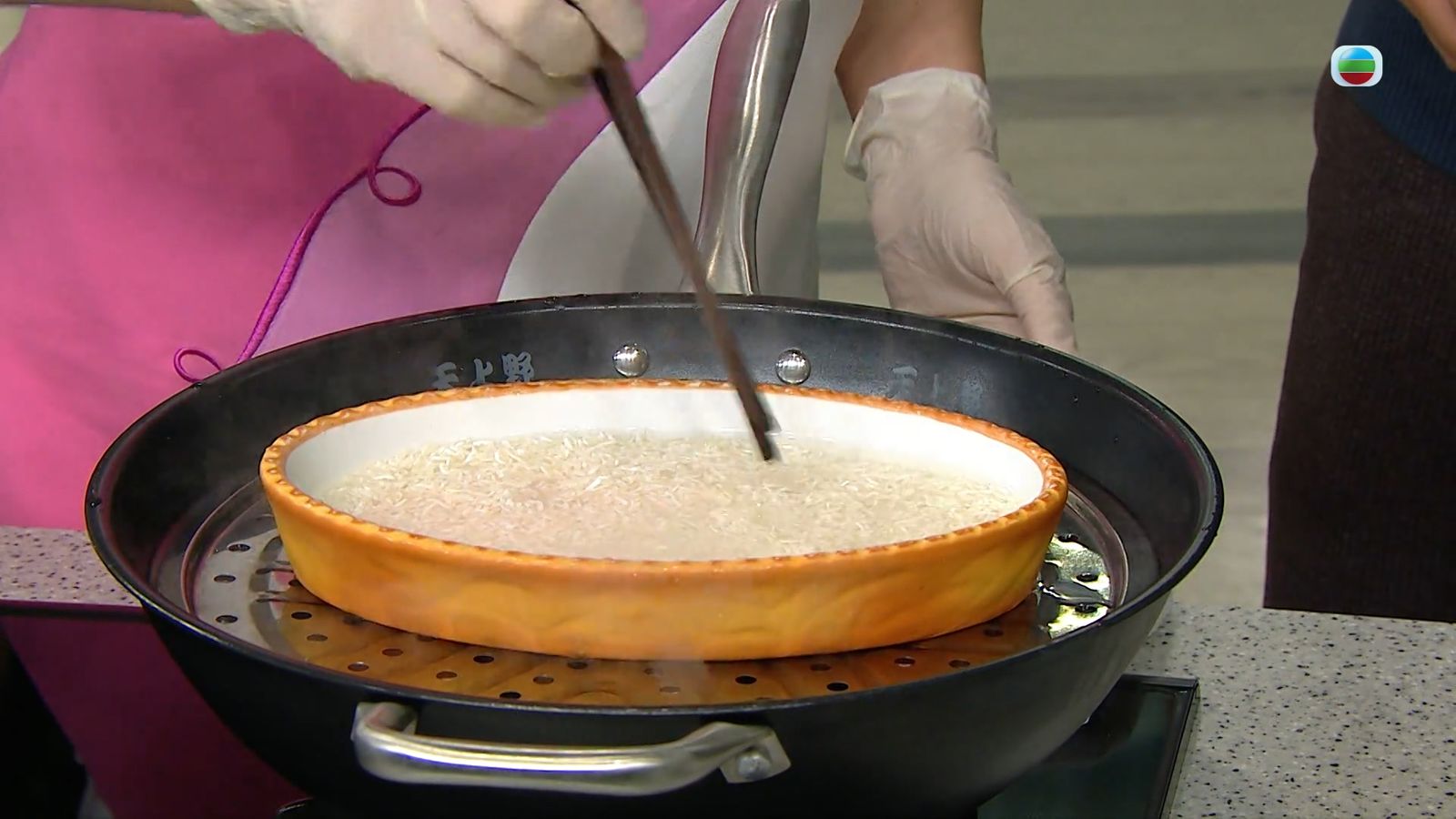 1.米放深碟內,注入清水,隔水蒸約20分鐘。