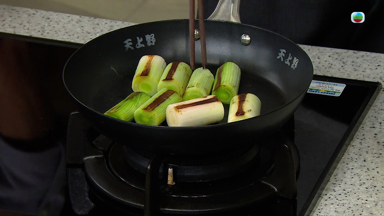 蔥含有豐富的抗氧化成份,Leslie選用的是俗稱京蔥的大條韭蔥,切成小段之後白鑊煎焦香備用。