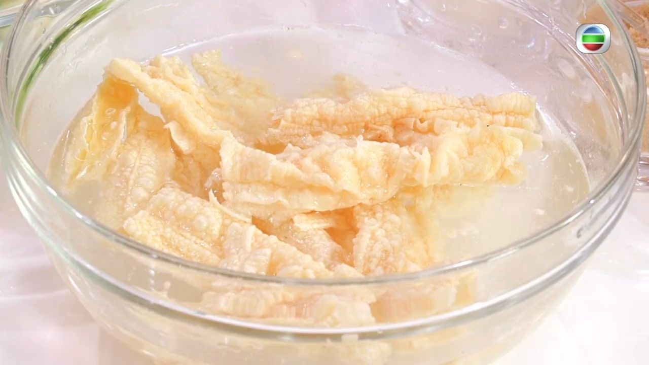- 芥菜只用莖部,切作大塊;炸枝竹泡水變軟