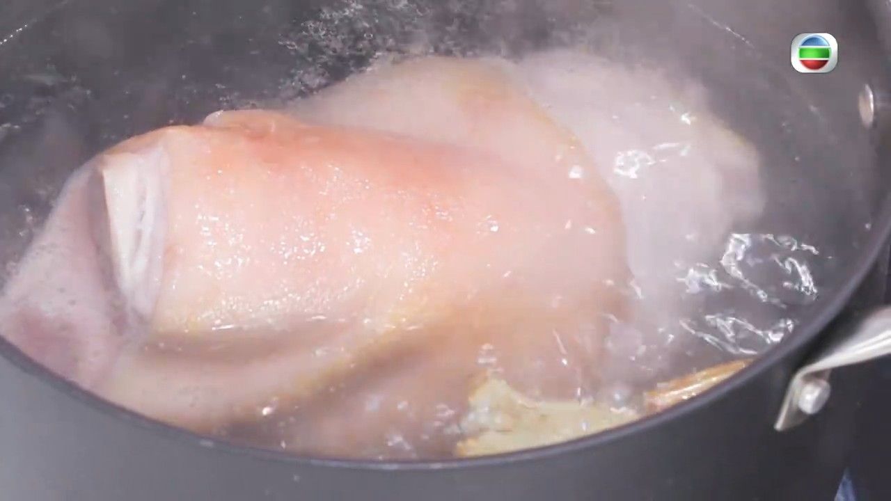 - 煲一鍋水,水滾後放入豬手及薑片,煲至少一小時