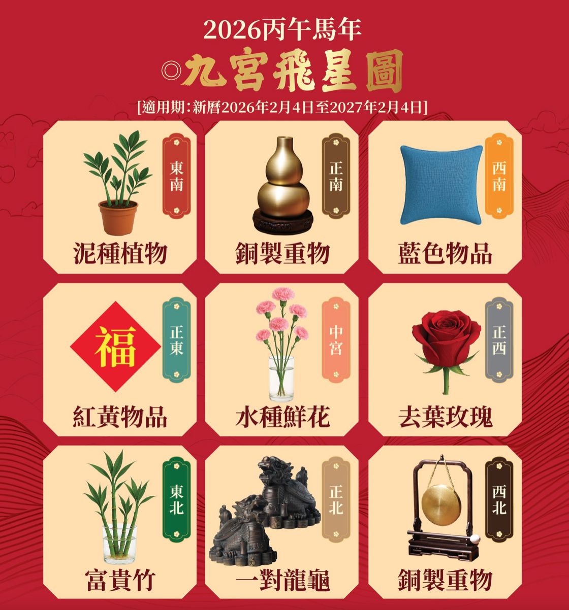 麥玲玲2026馬年運程|簡易家居風水佈局!想催旺桃花、升職加薪怎樣做?附九宮飛星圖