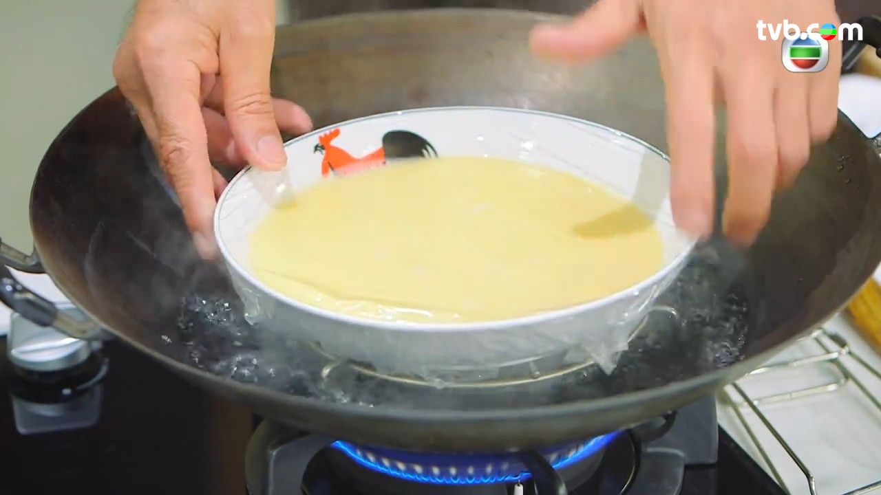 - 用耐熱保鮮紙把碟面封好,水滾後蒸約13至15分鐘(視乎盛器質料)