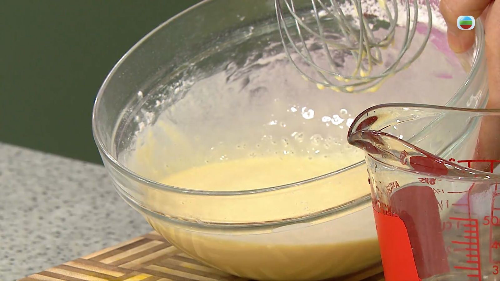 小金杯會用到粘米粉、麵粉和粟粉三種粉,當中的比例會影響小金杯的口感,可以根據喜好自行調整。把三種粉和鹽一起篩到碗中,拌入蛋液和水之後重新過篩即可靜置15分鐘備用。水的份量同樣會影響小金杯的厚度和脆度。