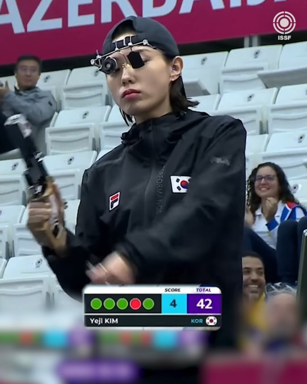 現年31歲的韓國射擊選手金藝智在今屆巴黎奧運以 241.3分的高命中率奪得10米氣手槍銀牌,成績僅次於獲243.2分的19歲同胞吳藝真。除了成績亮眼之外,金藝智的個人魅力才是最為「致命」。她以一身全黑造型出戰,單手插袋射擊的帥氣畫面很快便在網上瘋傳,冷面加上超殺眼神,猶如拍攝殺手電影般型格!而後,金藝智在今年參加ISSF世界盃上被拍攝的一段舊片也流傳開來,當時她冷靜地瞄準、扣下板機,後續以一臉冷漠的表情查看射擊結果,又不時戚嘴流露不滿意的神情,擊中無數網民的心,更獲封「女版John Wick」!![]()