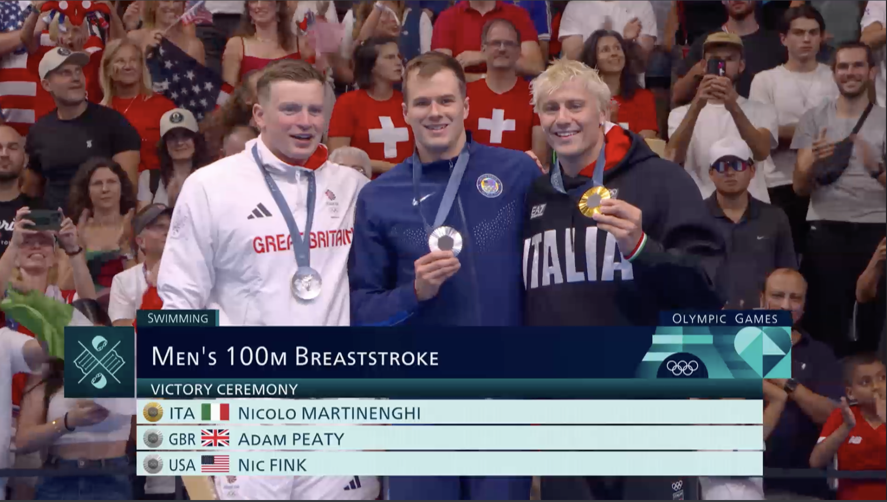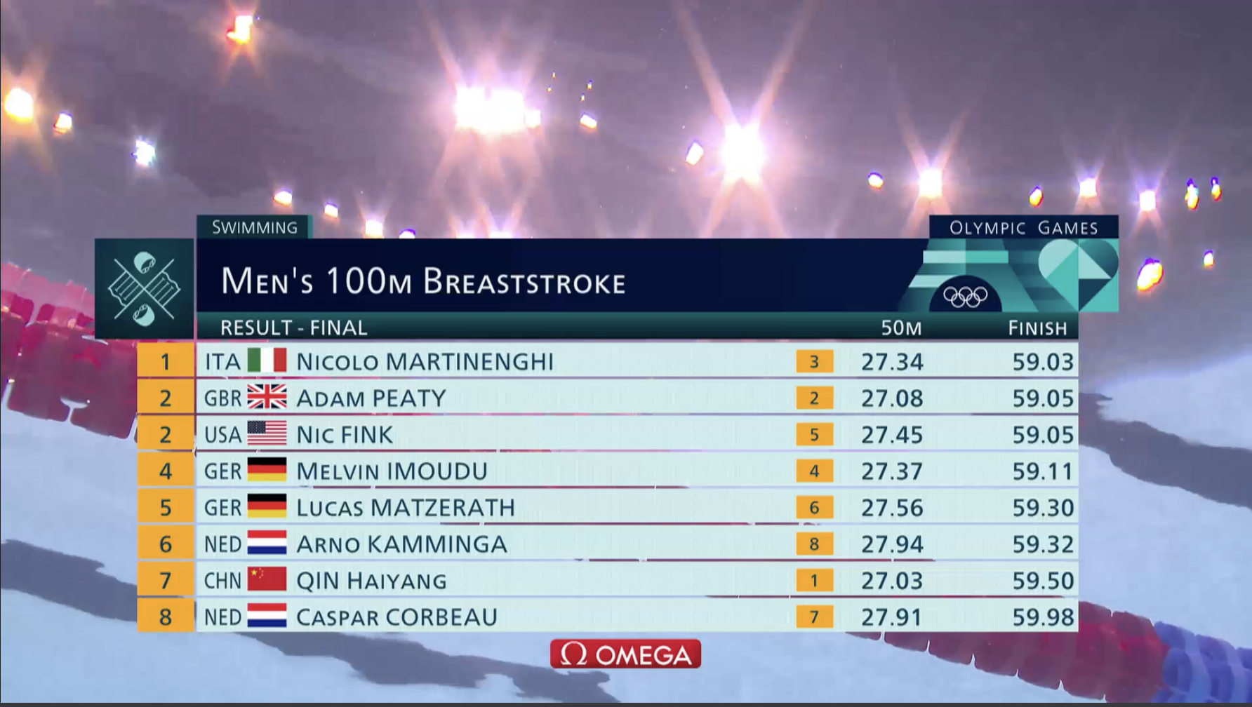 據了解,芬克為了追夢,在這十多年間,利用工餘時間練水。他曾於出戰東京奧運,於200米蛙泳得第5名。今次,他再度出戰奧運,僅以0.02秒之差敗給金牌意大利選手馬天寧基(Nicolo Martinenghi),與英國蛙王比迪(Adam Peaty)並列銀牌! ![]()