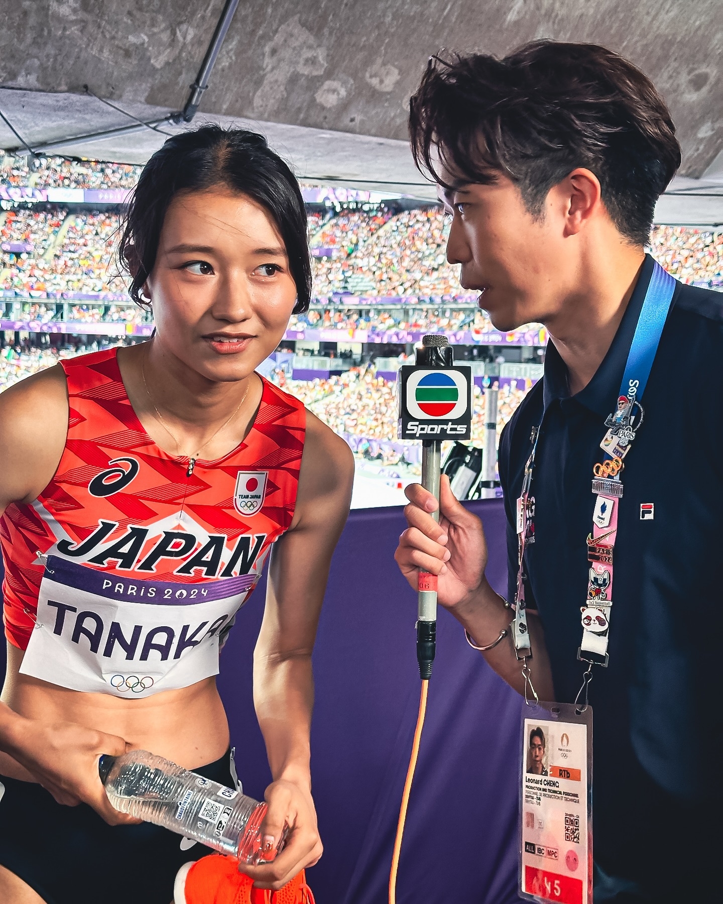 Leonard分享採訪感受:「田徑訪問最難度高既(嘅)地方係需要耐性,現場有差唔多100間傳媒守候運動員,每次運動員比賽完都會盡力同每間傳媒做訪問,但係同時間佢地都要爭取時間休息準備來緊既(嘅)比賽,所以其實你等足45分鐘就到你,可能都會因為運動員需要休息而訪問落空,但呢個唔係唔等既(嘅)原因,呢個崗位就係要每一次都係默默地守候住,希望為大家訪問到來自世界各地不同既(嘅)運動員。」Leonard工作專業兼認真,但有網友錯點笑言:「你換左(咗)好多件衫喎!」