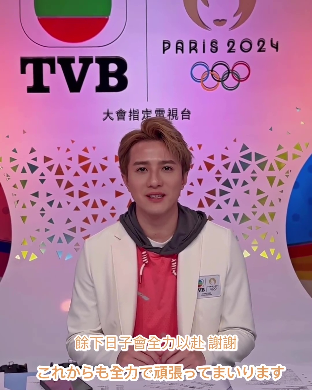 「奧運之星」之一的黃庭鋒日前因為為日本乒乓球選手早田希娜即時傳譯時表現出色,備受網民讚賞及媒體關注。為了回饋網民的鼓勵及支持,庭鋒昨日誠意十足地以日文發表答謝文:「好開心能夠成為今屆奧運的主持,收到很多鼓勵和支持,真的很多謝大家,餘下日子會全力以赴,謝謝!」庭鋒貼文一出獲不少圈中人及網友支持,曾與庭鋒合作《OPM》的湯洛雯便以日文譯音留言讚庭鋒「非常酷」,曾於日本讀書的姜麗文則以日文留言:「がんばれー!応援してるよん(祝你好運!我支持你)」好有愛呀!