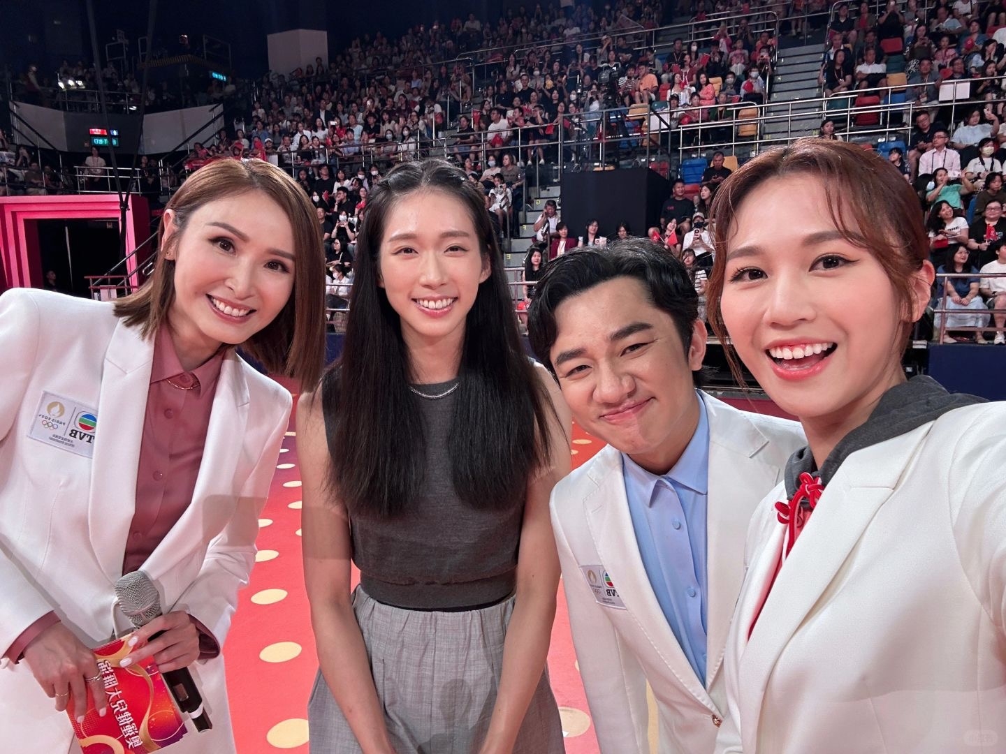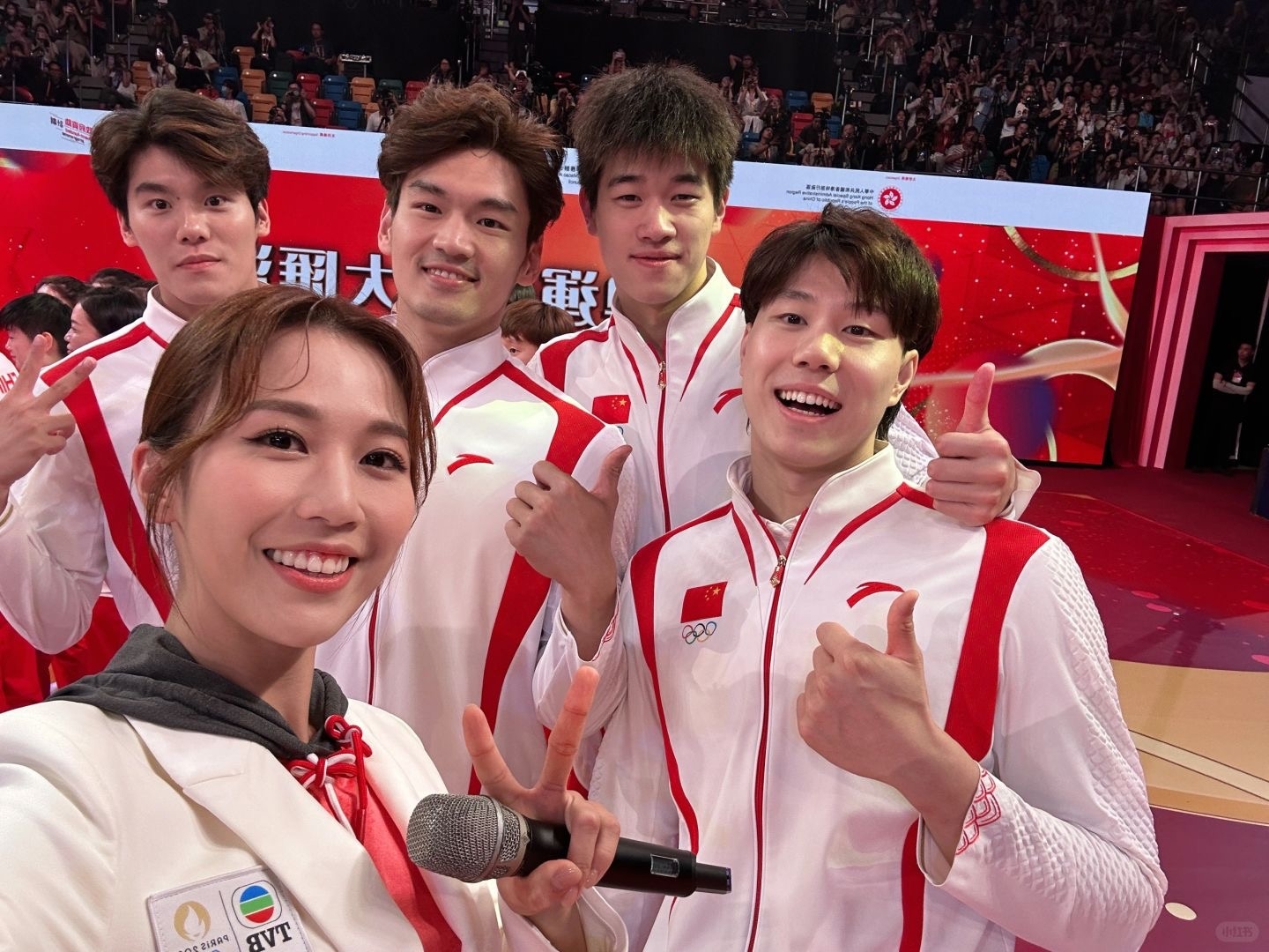 國家隊奧運健兒於8月29日至8月31日訪港進行一系列活動,在30日晚舉行的大匯演上,奧運冠軍們一展渾身解數,近距離為香港市民們帶來精彩表演。TVB全程直擊,並派出多位藝人參與主持,汪明荃、陳貝兒、陳庭欣、區永權、何沛珈都有在事後分享與國家隊運動員的合照!不過最令網民羨慕的是,王祖藍成功收獲全紅嬋微信,兩人更打成一片!