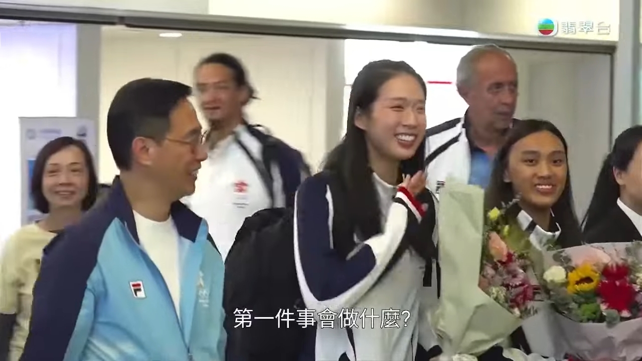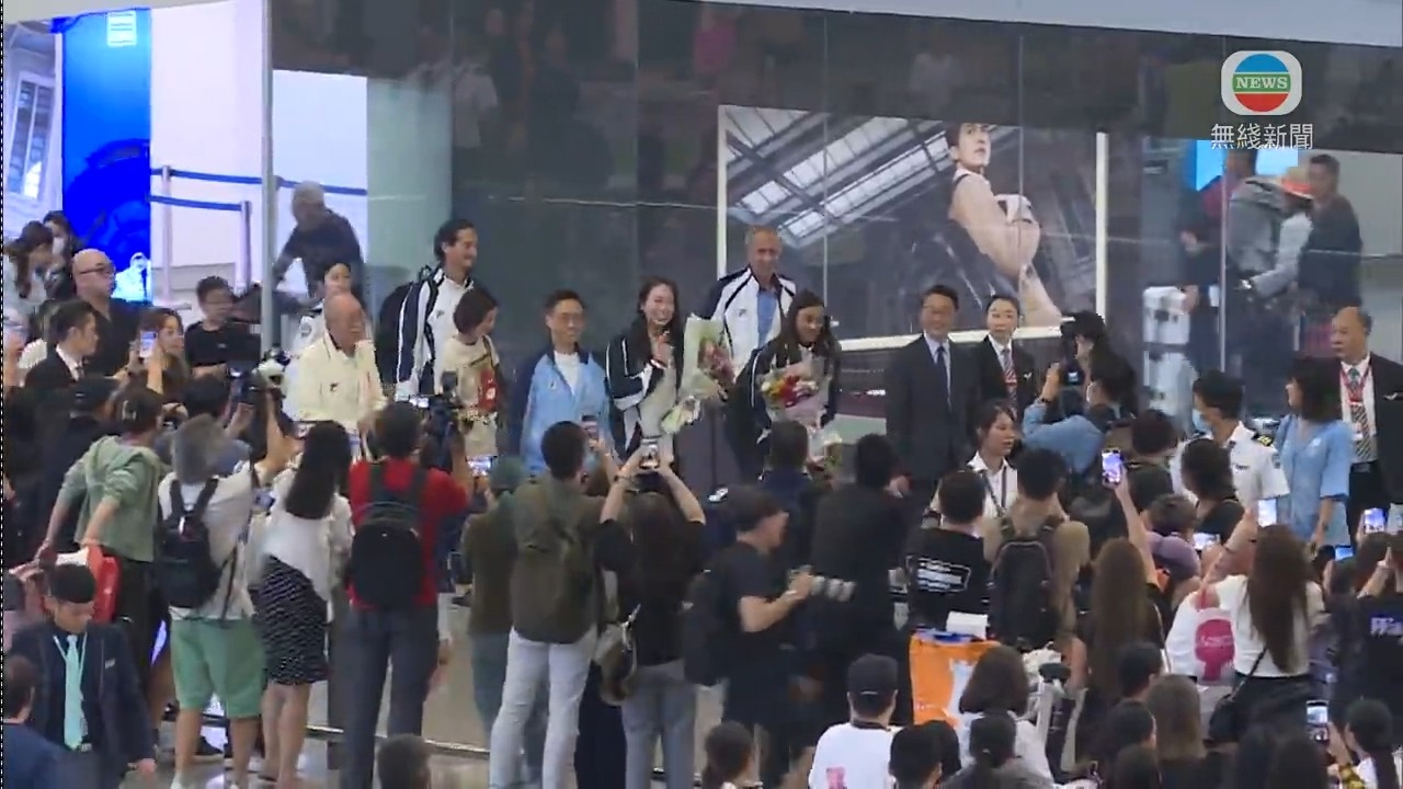 「世一微笑劍后」江旻憓在巴黎奧運女子個人重劍決賽勇奪金牌,昨日(1日)清晨與港隊劍擊隊友陳諾思一同凱旋歸來,現場除了不少傳媒守候,還有大批粉絲、市民在抵港大堂迎接她們。兩人各人手捧鮮花束步出抵港大堂,「微笑劍后」展露超甜招牌笑容向大家揮手,盡顯親民一面;而傳媒及一眾支持者隨即衝上前舉機拍照,場面非常墟冚。
