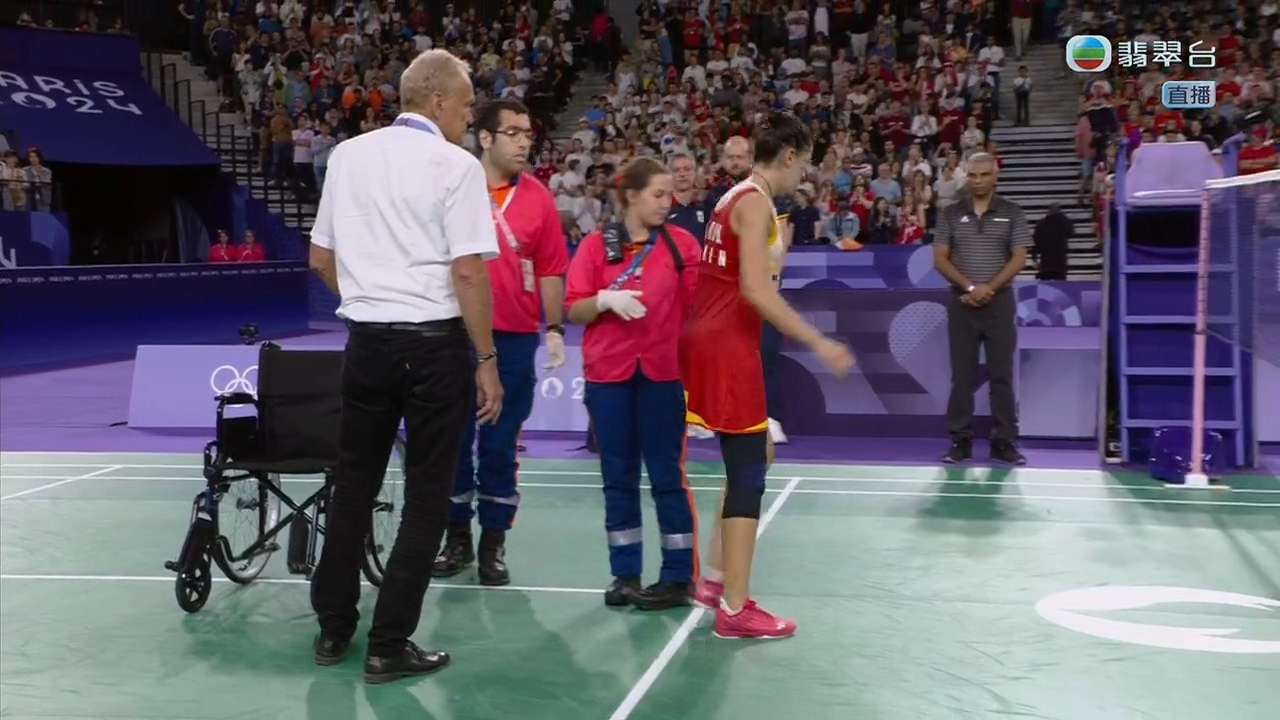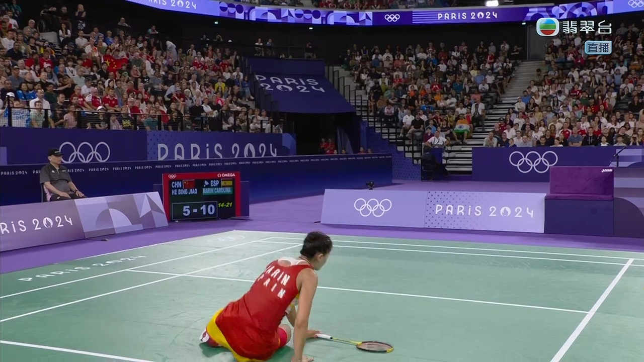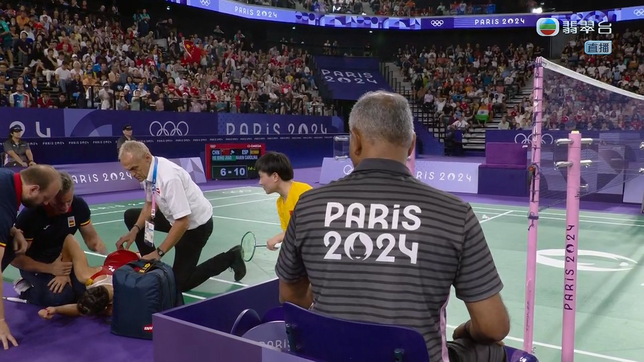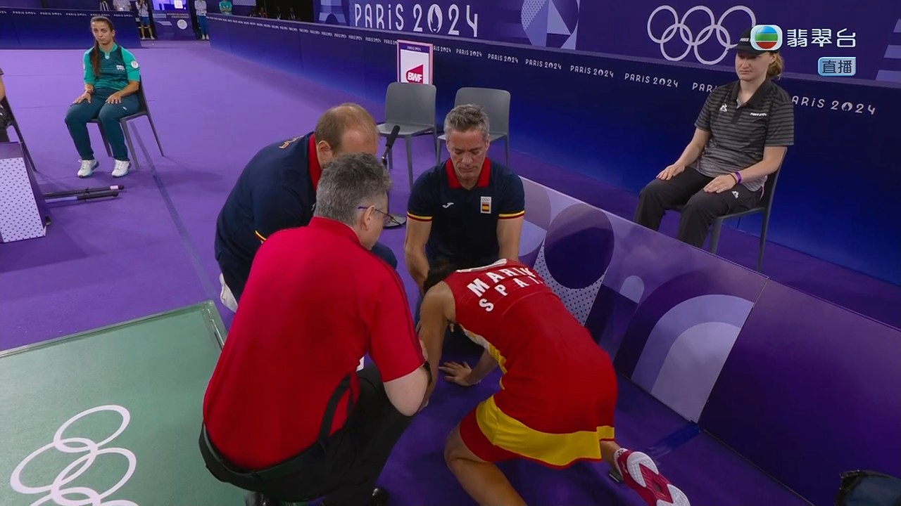 巴黎奧運女子羽毛球準決賽於今日(4日)下午3時40分舉行,由國家隊何冰嬌對陣西班牙名將,2016年里約奧運會羽毛球女子單打金牌獲得者Carolina Marin(馬蓮)。第一局開場,雙方節奏相當緊湊,馬蓮以21:14率先拿下第一局。然而在第二局馬蓮10:5繼續領先,形勢大好的情況下,賽場上卻突然發生令全場觀眾心碎一幕,馬蓮在大起跳救球後不慎拉傷膝蓋痛苦倒地,一度躺在地上起不了,何冰嬌在一旁亦相當緊張。![]()