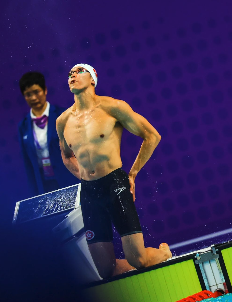 何甄陶,曾獲得2022年亞洲運動會男子50米自由式銀牌,2021年於香港長池游泳計時賽IV男子50米自由式決賽中游出21秒97,刷新香港紀錄兼達到東京奧運A標,成為香港男子泳手第一人。![]()