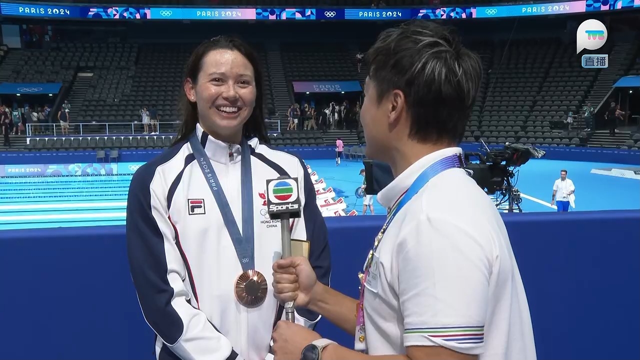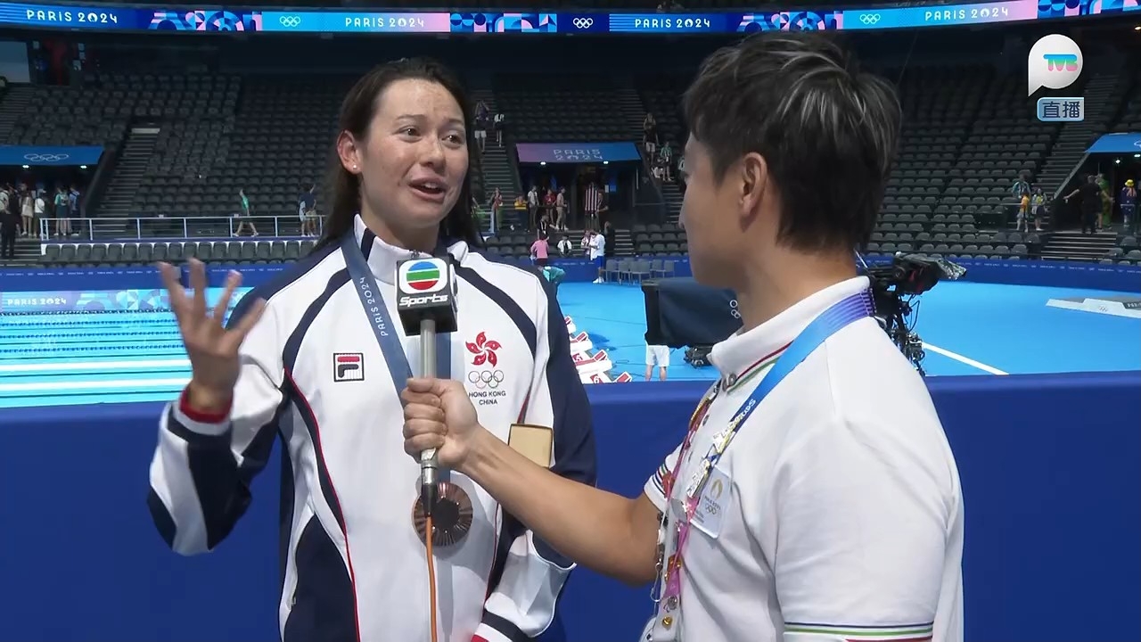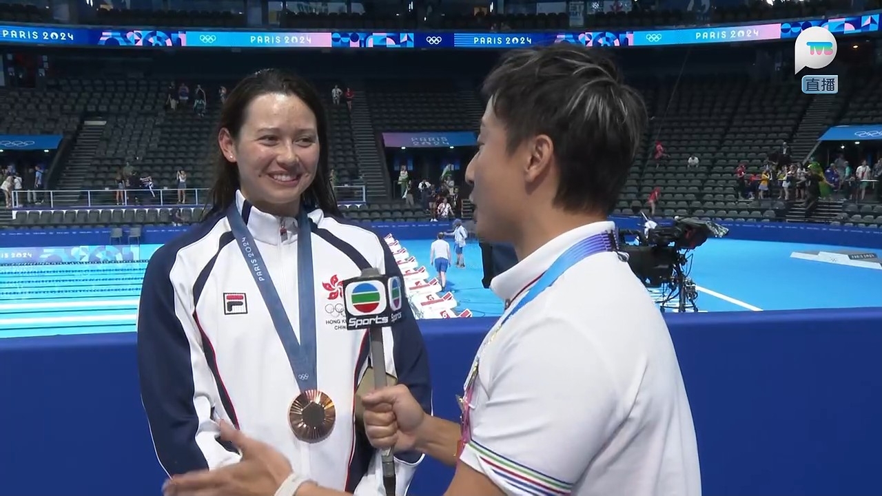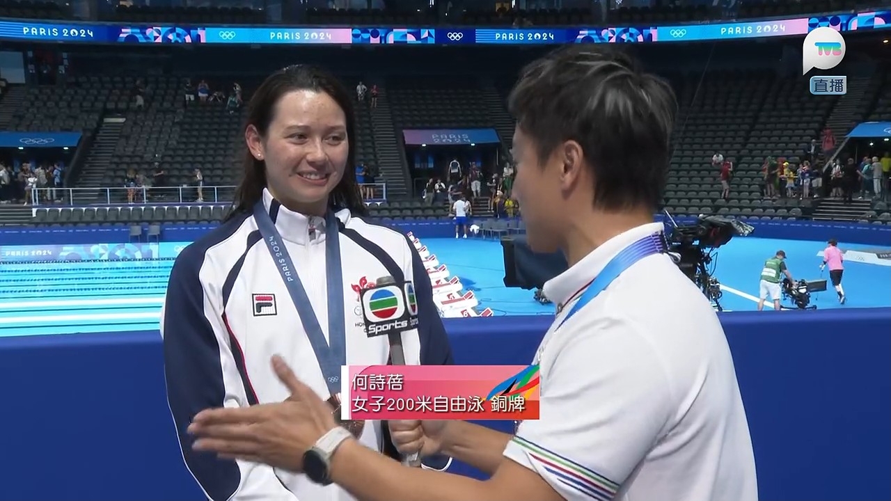 香港女飛魚何詩蓓在巴黎奧運200米自由泳勇奪銅牌,為港隊增添一面銅牌,亦是港隊今屆奧運的第二面獎牌,可喜可賀。無綫巴黎特派專員方力申(小方)在何詩蓓領獎後進行專訪,小方問到比賽的感受和能否達成比賽部署?何詩蓓坦言:「我知道呢場比賽(成績)會好近,澳洲實力真係好強,佢哋幾個月前先破咗世界紀錄,我知呢場比賽唔會容易,我嘅強項係Easy speed,所以我盡量一開始游快少少,以一個輕鬆速度去游,我知道澳洲選手通常會喺最後50米會搏盡衝番上嚟,我知道最後25米唔可以放棄,耷低頭好快咁去游,睇吓邊個可以最快掂池,雖然時間比我想像中慢少少,但係攞到銅牌我都好開心,同埋現場見到好多香港區旗,好多香港人嚟咗呢度睇我比賽,我屋企人都喺現場,令我感受到大家嘅支持同埋好開心。」何詩蓓又感激身在香港的觀眾捱夜支持:「好多謝大家嚟緊呢兩個星期要捱夜睇比賽,好多謝大家支持,我呢幾日比較少上Social Media,睇唔到大家嘅Message,但係我感受到大家嘅愛同埋支持,希望大家繼續支持香港運動員,我哋好努力為大家比賽,希望大家都可以支持我哋。」