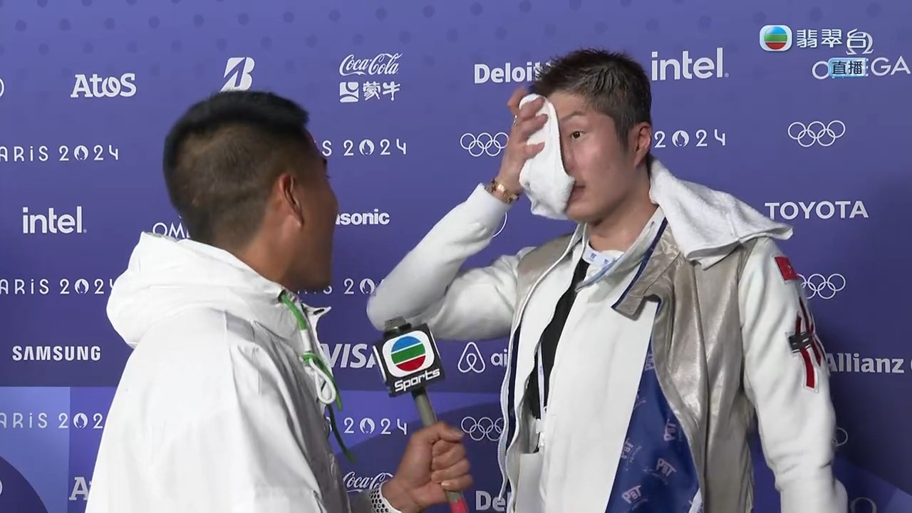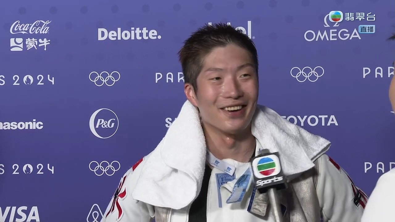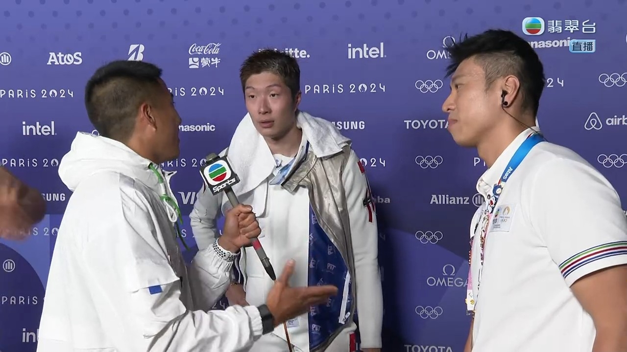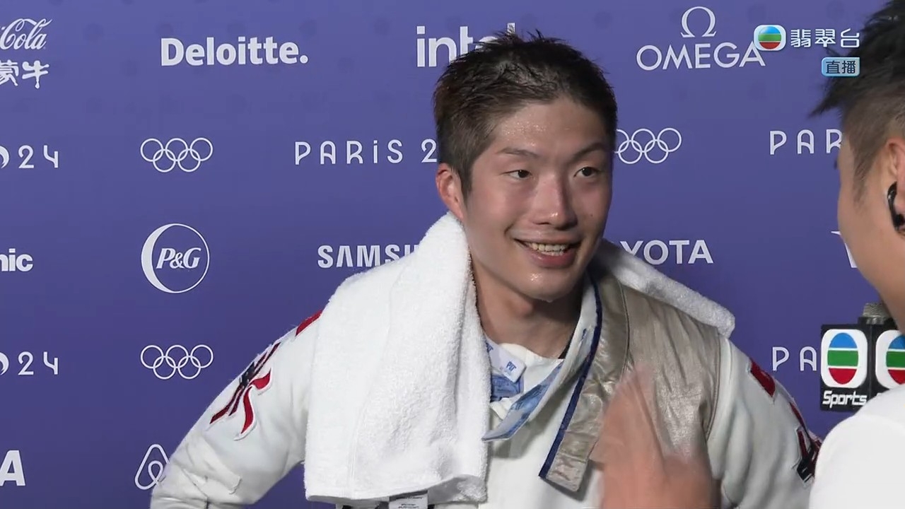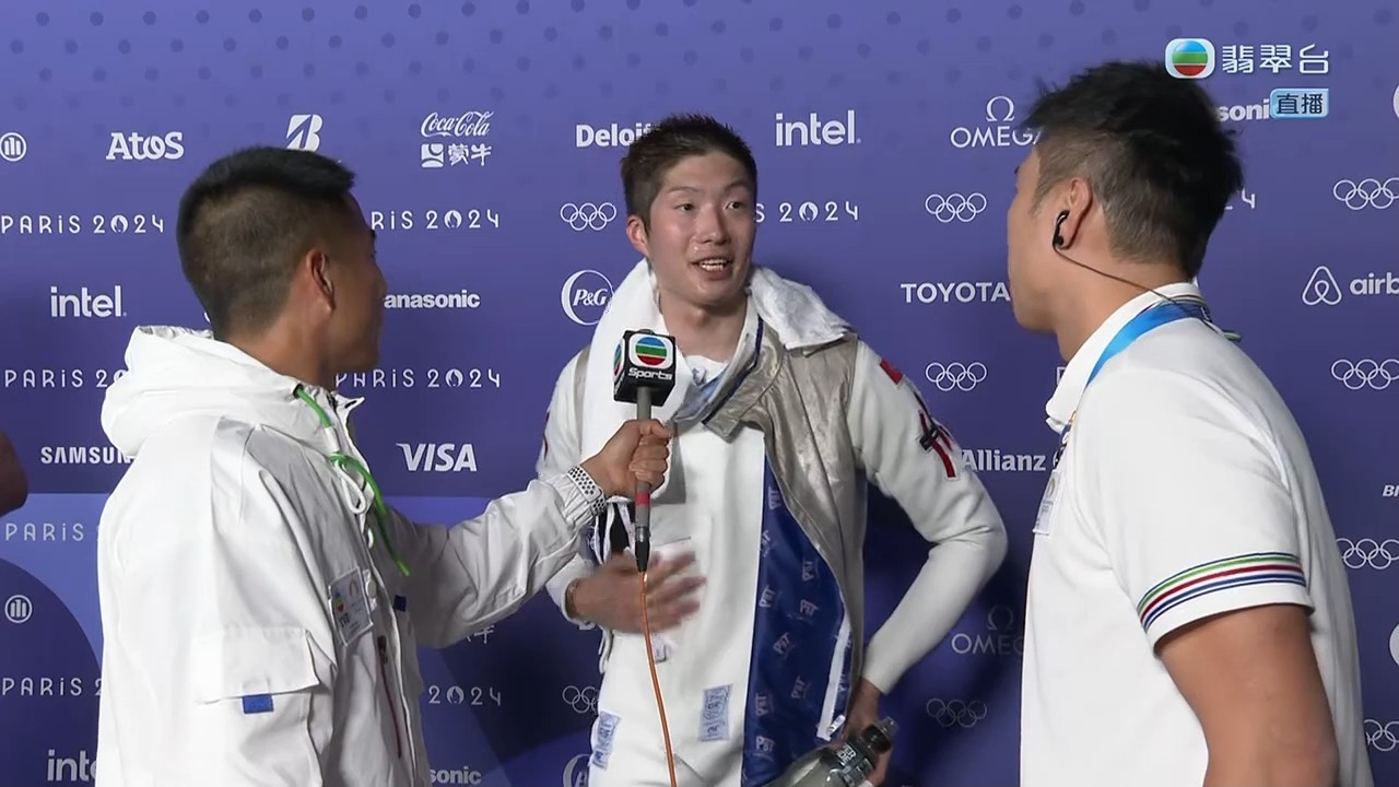 至於同為運動員的陳銘泰相當激動,全程哽咽著訪問家朗,問到家朗兩次創造歷史感受有何分別時,家朗說:「上一次係第一次唔敢相信啦,今次當然都唔敢相信,但今次我教練係法國人,我可以喺度攞到冠軍,對我意義非常好,教練照顧我都幾辛苦,我自問都係幾煩嘅運動員,佢都控制好情緒去照顧我哋,佢練習同心理上都有輔導我。」陳銘泰大讚家朗在最後要決一劍三次時表現強大,並問家朗有甚麼秘訣寄語港人捱過艱關時刻,家朗說:「我想話大家需要唔好放棄,要堅持,就算遇到好多挫折都好,記住自己為乜開始,就算自己唔如意嘅事,都要堅持到底。」
