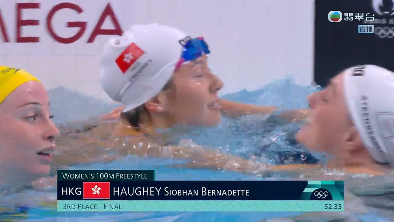 巴黎奧運2024|「女飛魚」何詩蓓女子100米自由泳奪銅 獲個人奧運第四塊獎牌創港隊歷史