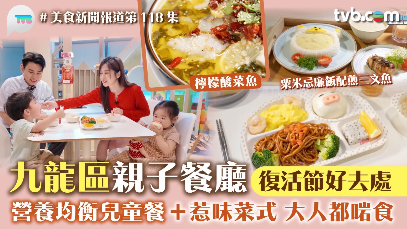 今集《美食新聞報道》由主持蔡景行(行仔)孖倪嘉雯(Carmen)帶路復活節食、玩好去處!首站二人去到荔枝角長順街一間親子餐廳,兒童套餐之一粟米忌廉開心小熊配煎三文魚,以少油少鹽的烹調手法製作美食,細佬食得開心,大人放心。行仔自揭喜歡小熊飯的一個致命原因,成功勾起Carmen的好奇心,行仔揭盅:「對於一個小朋友嚟講,滿足咗你粟米湯撈飯嘅感覺,同埋湯底味道夠濃郁,撈埋飯就咁食已經覺得好過癮。」第二個兒童餐,粟米南瓜忌廉汁紐繩粉配茄汁雞肉丸,紐繩粉又名特飛麵,起源自意大利熱拿亞,口感特別,比意粉更加煙韌,肉丸的茄汁酸甜適中。