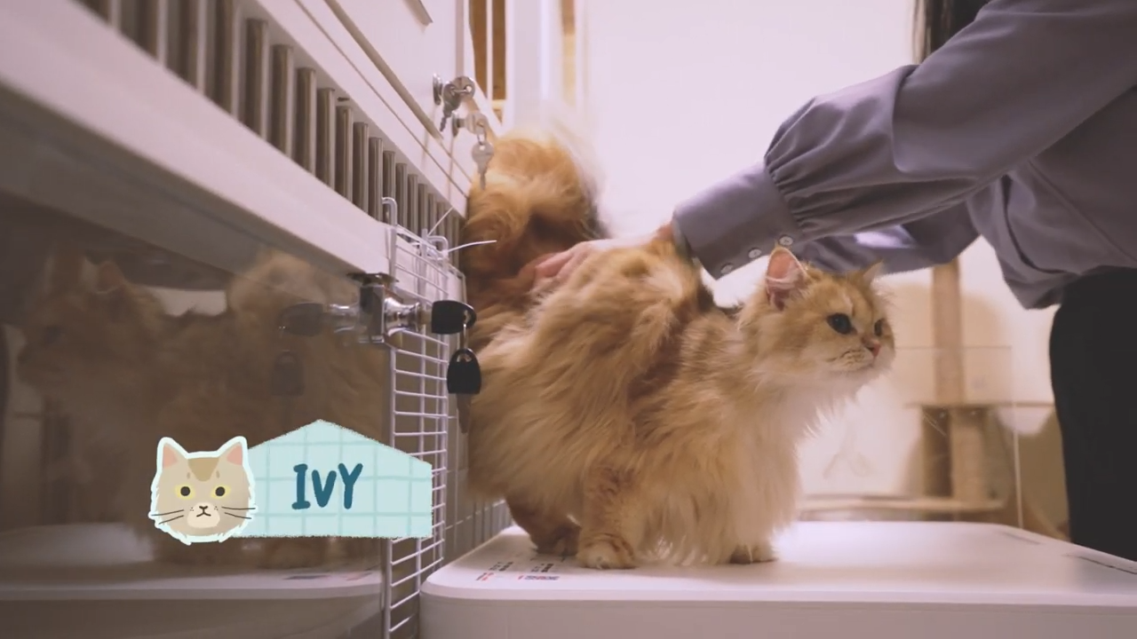 五隻貓店長分別是虎仔、芋頭、發財、卡比和Ivy。虎仔是男孩,領養牠時才一個月左右大,很黏人;芋頭,女仔,8個月大的時候開始照顧牠;發財從4個月養了半年左右,現在10個月大,是一個好奇BB,喜歡跳來跳去,活力十足;卡比則是因為原主人家中負擔不了,所以就轉讓給自己,Pamela說卡比性格乖還很會撒嬌,和自己緣分很深,原來一人一貓生日是同一天。最後一隻英國長毛貓Ivy,第一次看到Kate時,就在其腳邊躺下,令Pamela當場融化。![]()