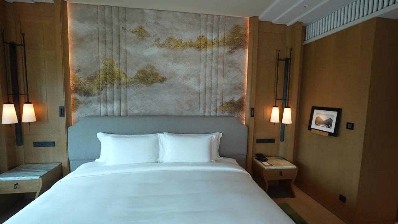 這間酒店歷史悠久,1970年已經落成,2019年重新建過,被稱為泰國第一間高級五星酒店。拍攝時酒店餐飲地帶及泳池未完成,胡慧冲先拔頭籌帶大家參觀兩間客房。房內大窗將曼谷高樓大廈盡收眼底,視覺效果一流。![]()