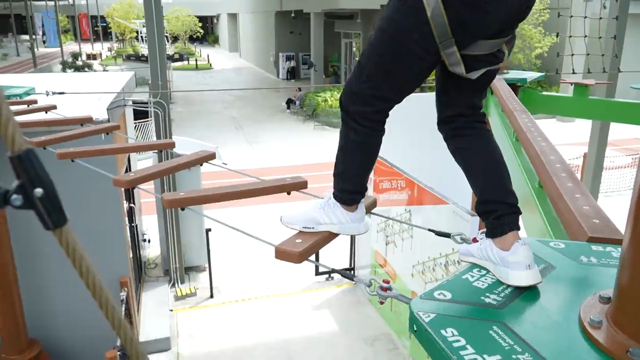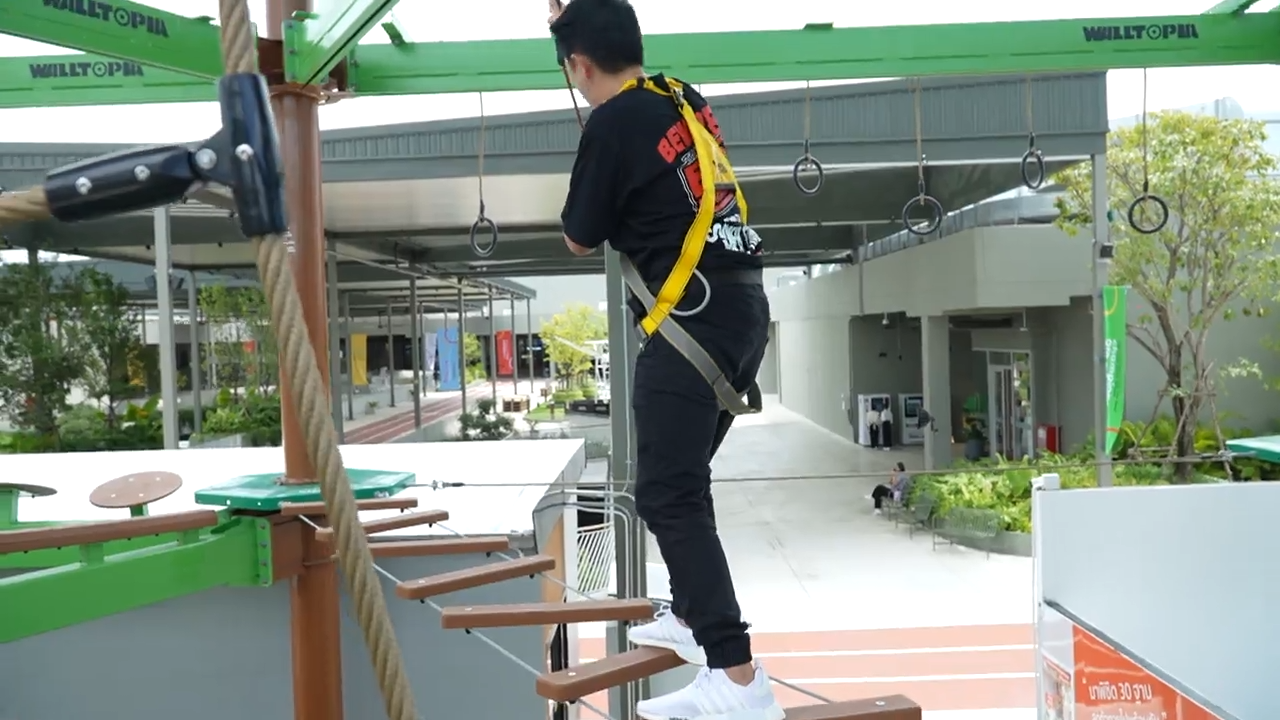 有畏高症的冬蔭哥哥還挑戰玩刺激高空遊戲,做好安全措施後,見他步伐穩健,輕鬆完成,完全無難度。![]()