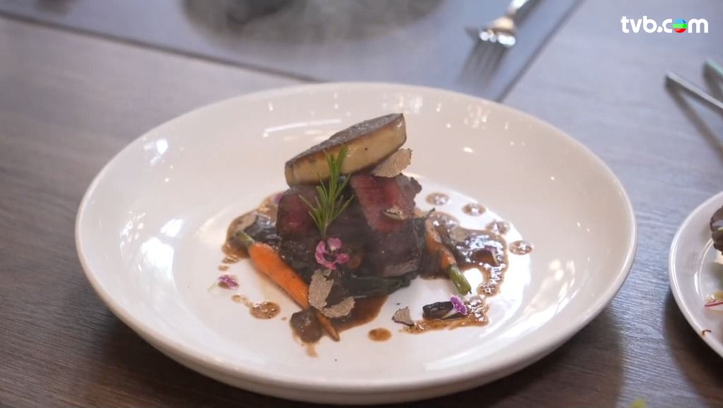 之後兩人去到酒店內唯一的餐廳,一噹特色菜式,首先用薄餅皮包着的海鮮意粉,簡直是味蕾的享受;和牛配搭大大塊鵝肝,還有紐西蘭牛柳的盛宴,簡直令人一看就食指大動!