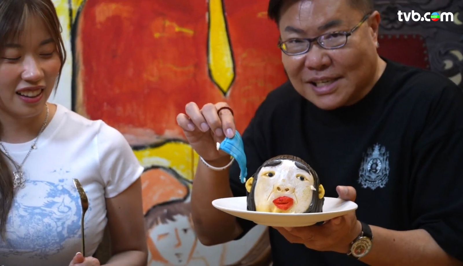 來到泰國曼谷這間以「紅姐」作主題的餐廳,周遭的佈置都掛滿了紅姐,就連老闆都親自設計關於紅姐的符!畫面見到就連員工都會化妝裝成「紅姐」,造型可以說是相當逼真!首先上菜的是「紅姐上妝造型蛋糕」,外型以男人搽上唇膏和粉底為主,咬下去便是海綿蛋糕,口感相當軟熟;之後就到「紅姐妝後造型蛋糕」上菜,揭開口罩見到烈焰紅唇,畫面相當震撼!外層咬下去口感似香口膠,切開又是海綿蛋糕,甜味適中,大家認真要一試!