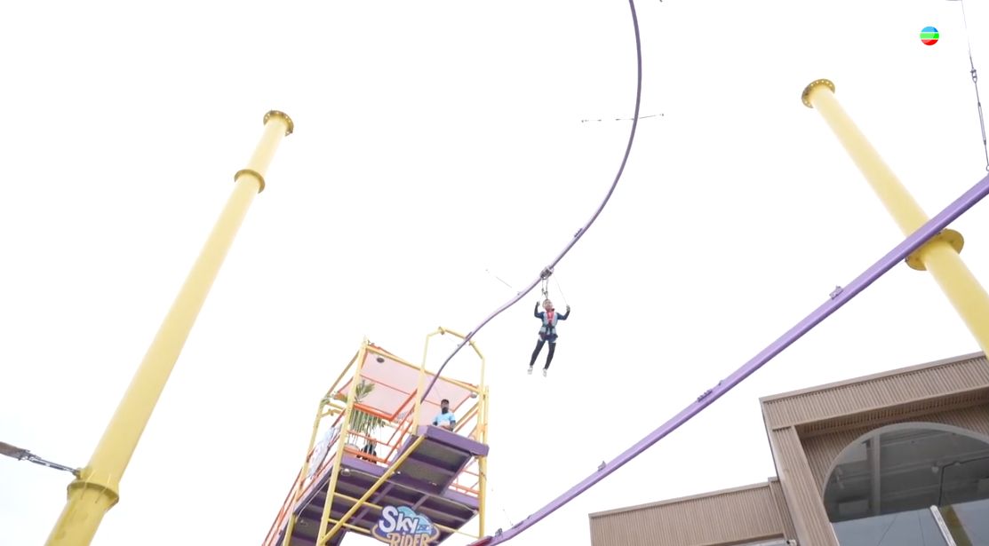 水上樂園除了有水上滑梯,還有空中滑索Sky Rider,相當刺激!