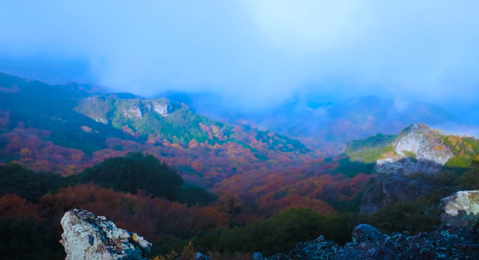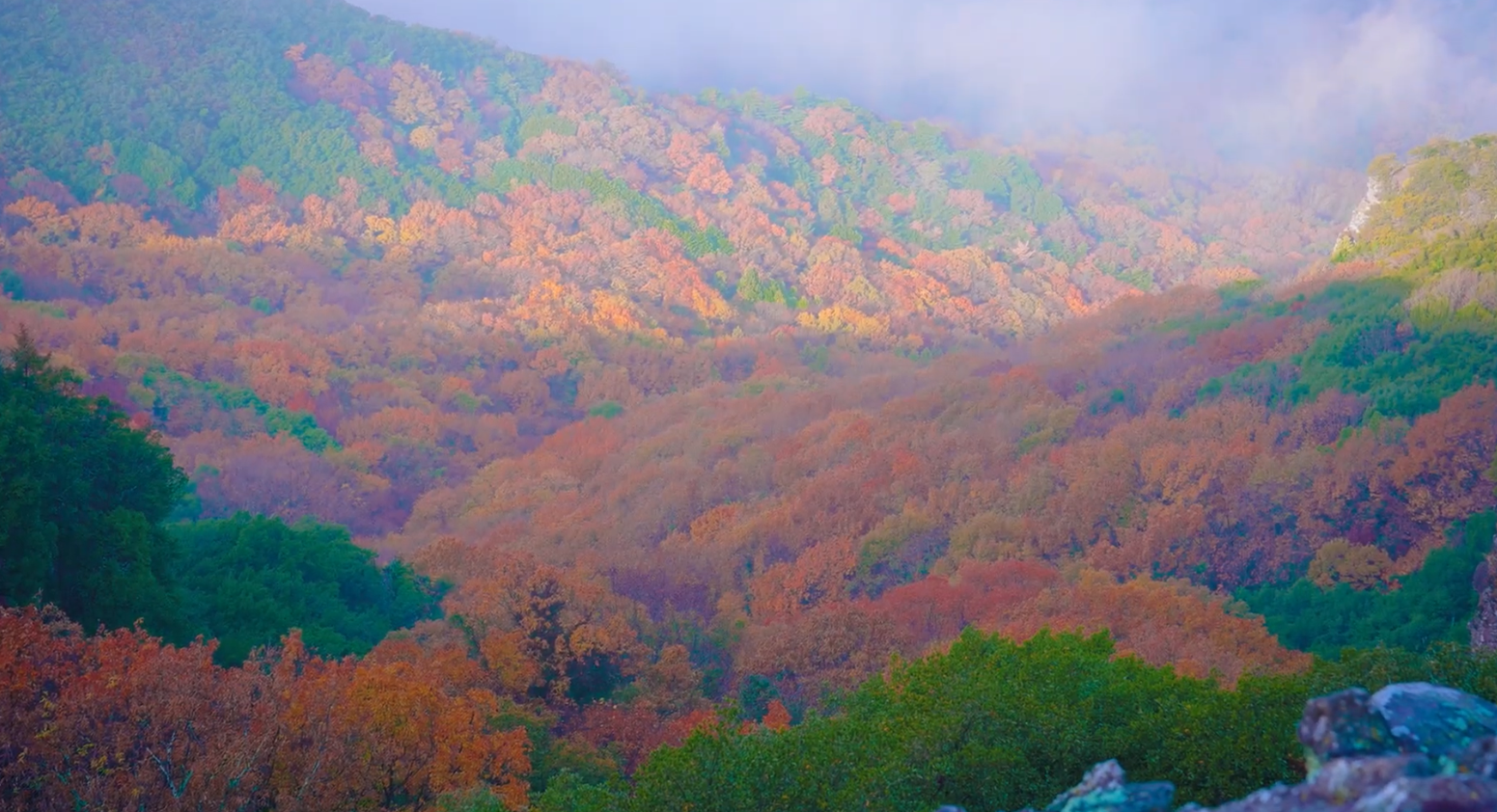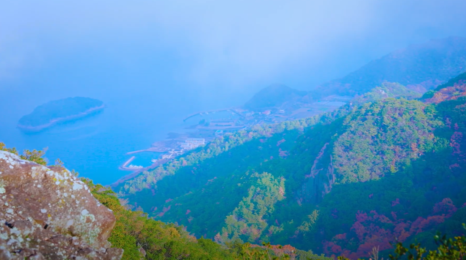 兩位主持人漫步了大半小時都未看到獼猴蹤影,當他們來到海拔大約700米的展望台時,放眼望去島嶼和瀨戶內海360度大全景極具震撼!加上繚繞的霧氣,猶如一片仙境!![]()