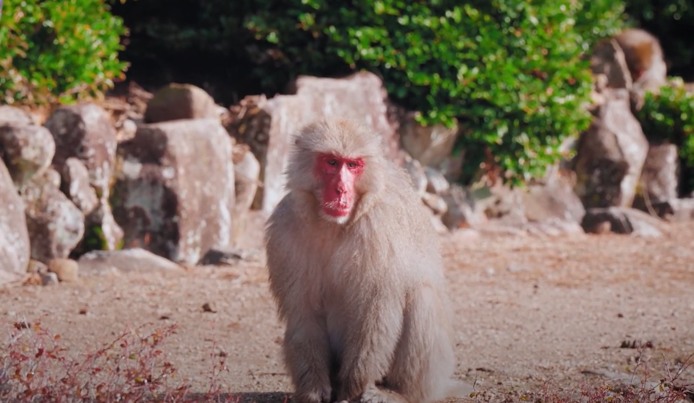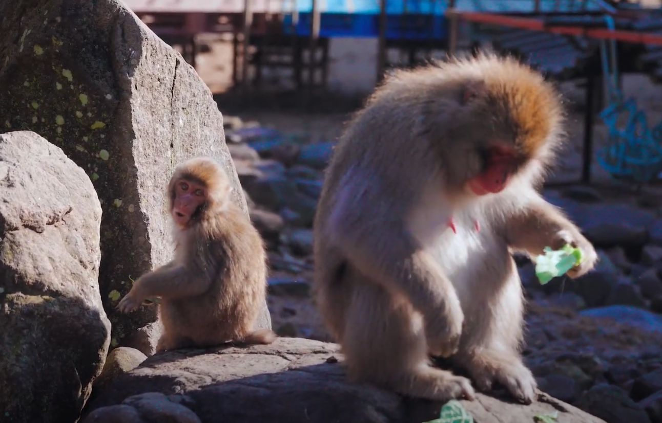 二人第二天一早出發去銚子溪尋找馬騮,銚子溪猿之國自然動物園距離碼頭20分鐘車程,園內有約300隻野生日本獼猴在此棲息,獼猴屬於群居生活的社會性動物,每個群體通常由一個成年雄性帶領,值得注意的是觀猴時須遵守三條守則,不要直視獼猴眼睛、不可擅自餵食獼猴、身上飾物及掛件不要外露。![]()