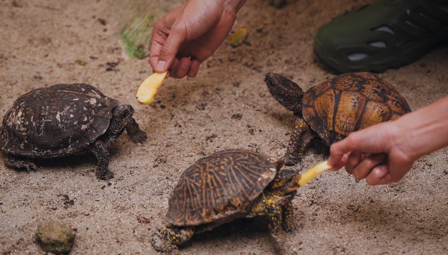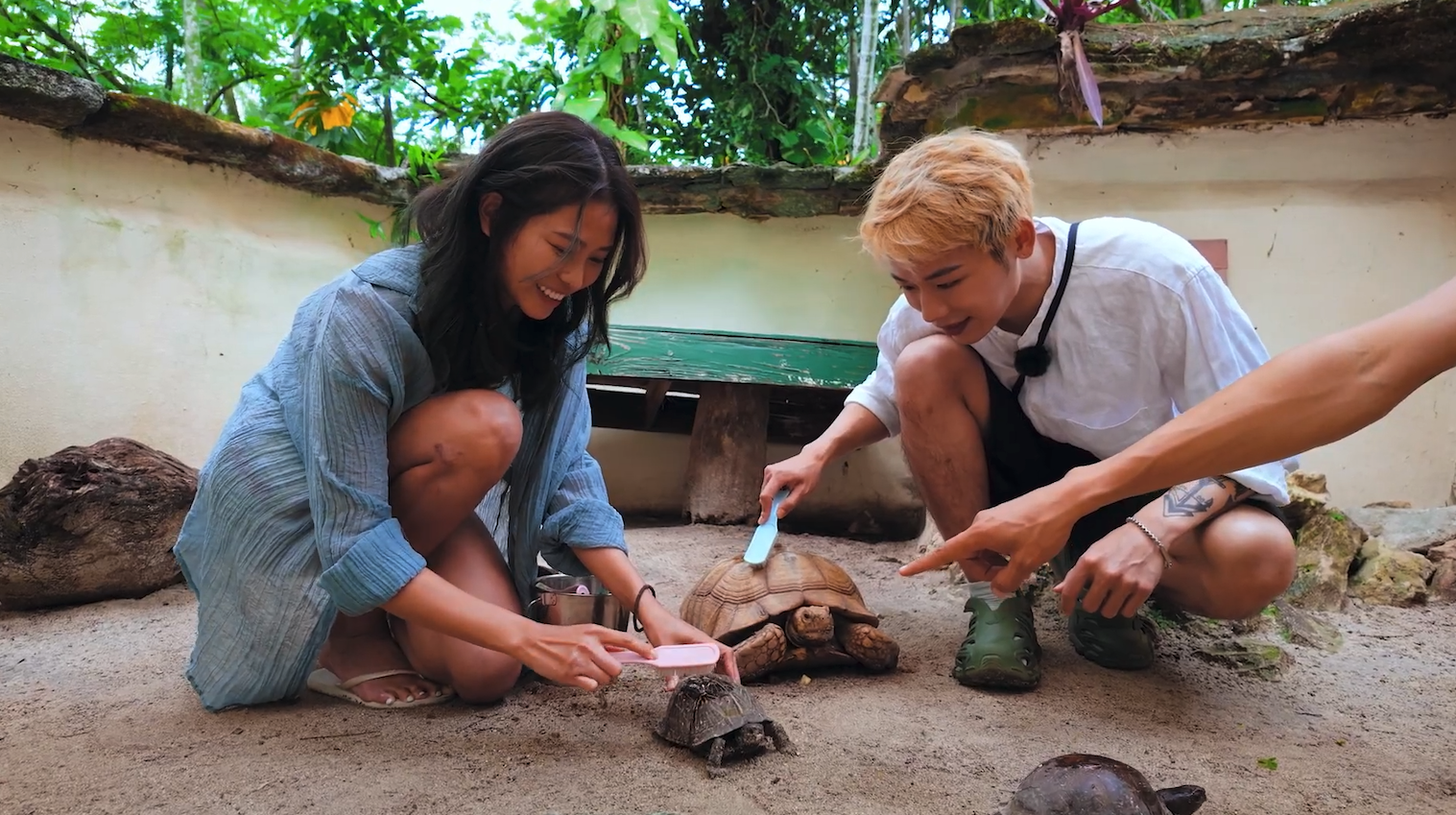 Kanya與Eden隨後嘗試用蘋果喂烏龜,原來烏龜的胃口取決於當天的天氣,如果天氣很涼爽的話,食慾就會沒那麼好。這裡的烏龜全部都是孤兒仔,本身養育牠們的主人有600隻烏龜,因為超負荷,園區也收留了其中200隻回來保育。除了喂食,二人還幫烏龜們洗澡,在他們賣力清潔下,烏龜的外殼變得煥然一新!Kanya表示除了被烏龜的可愛所融化之外,還因Hendrew一個細節被打動!當他們拿小蘋果餵養烏龜後準備離開時,見到Hendrew貼心拿出蘋果又派給剛剛沒有被飼養的每一隻烏龜,認真好用心!
