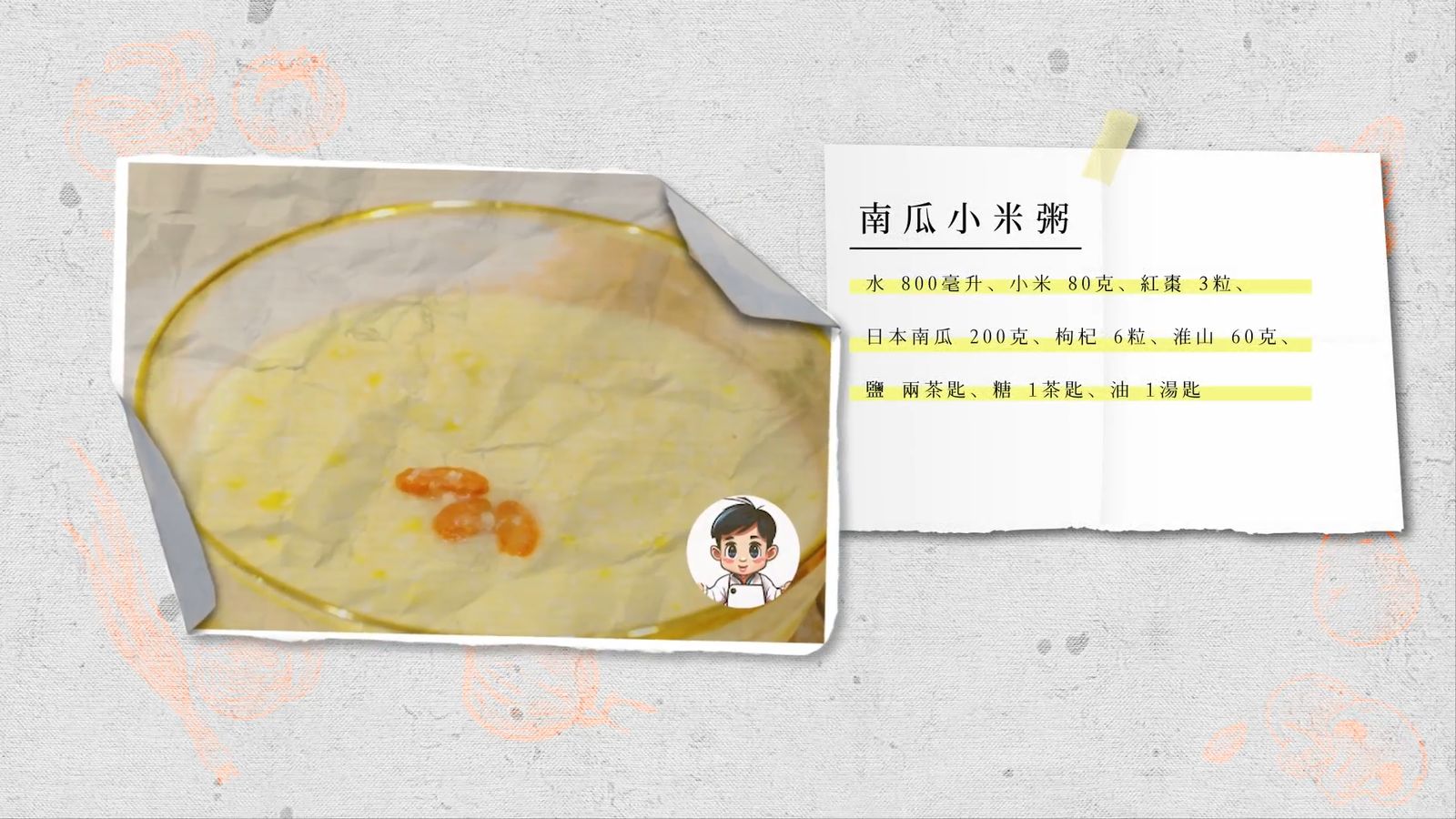 5. 接著加入南瓜和淮山煮30分鐘,隨時攪拌一下,以防糊底