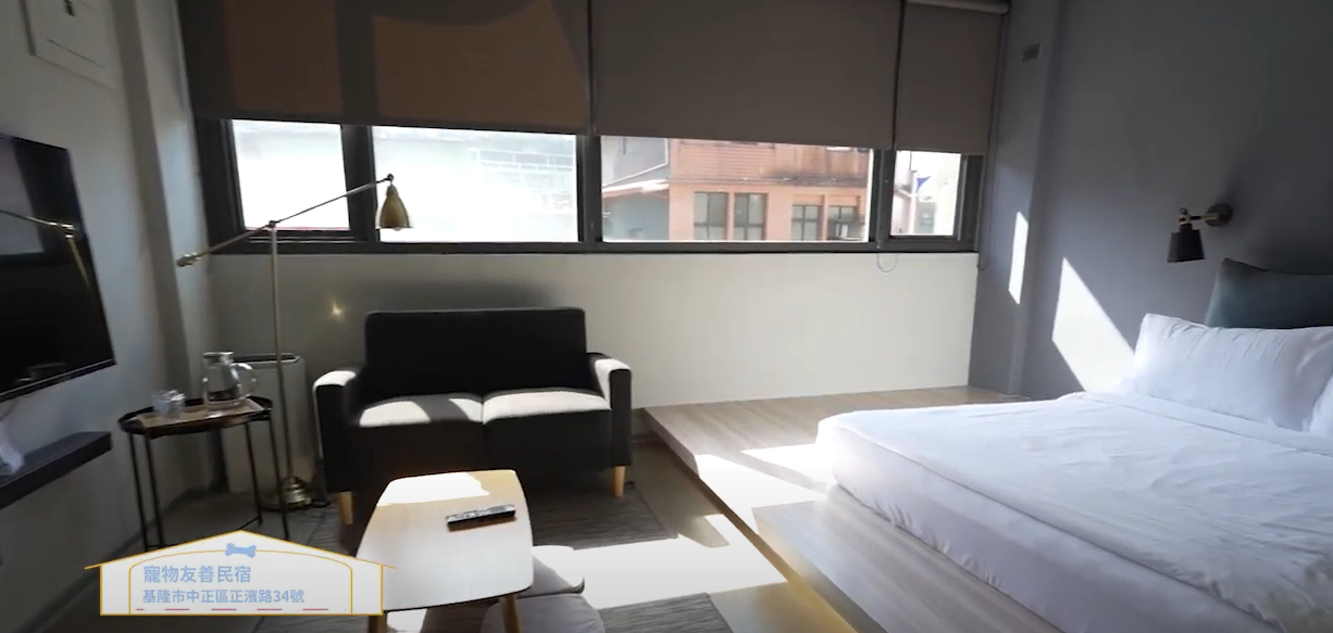 提供唯一一間的寵物友善房,一樓有小小的共享廚房,地理位置佳,基隆夜市10 分鐘,和平島公園4分鐘,正濱漁港正對面。