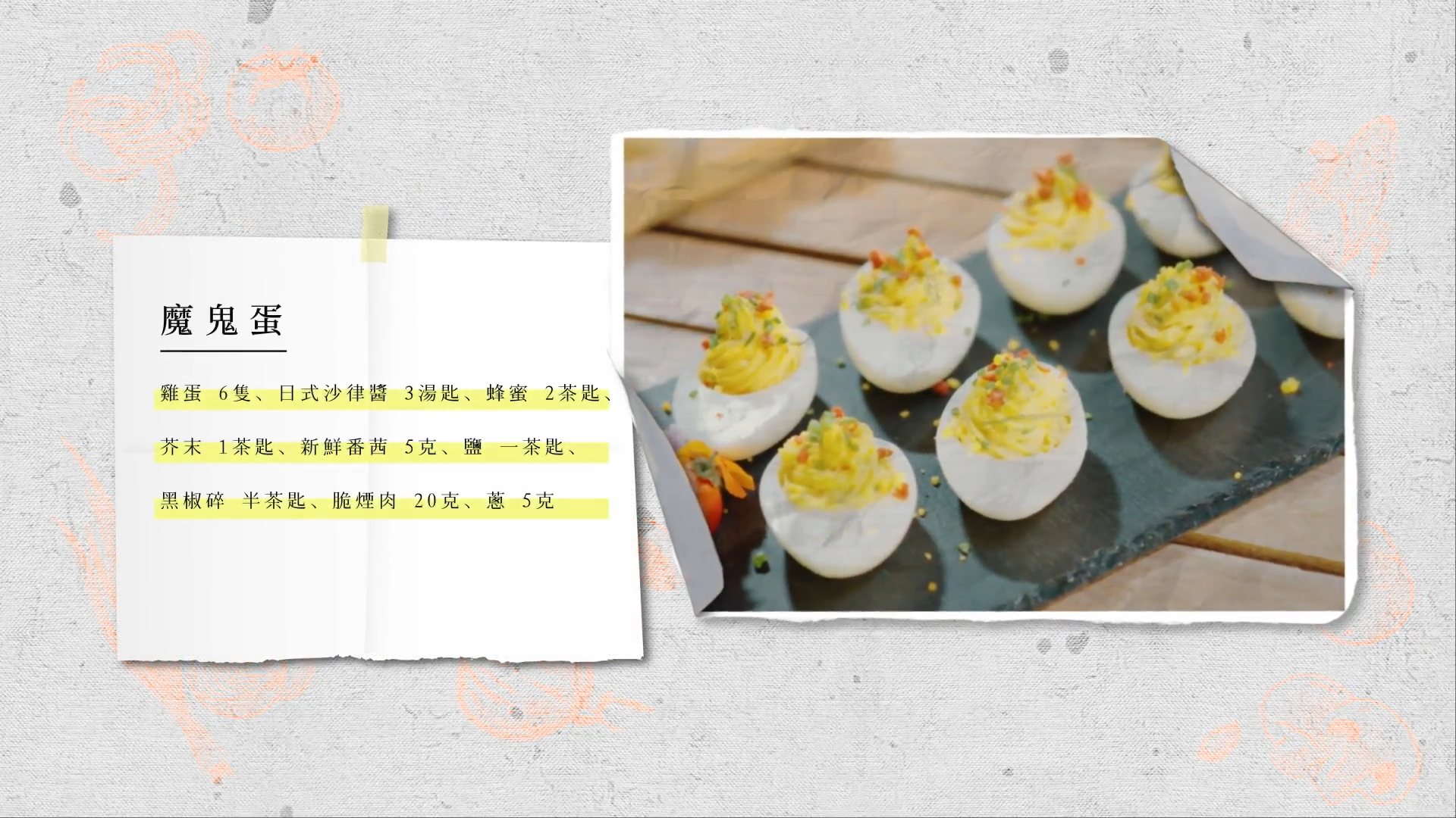 6. 把蛋白整齊排列擺盤,用擠花袋擠入蛋黃到蛋白上