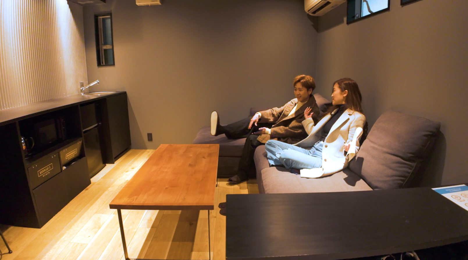 而酒店的設計及佈置亦相當特別,不似普通酒店的客房集中在一、二棟大廈內,商店街酒店的客房全部是由舊民居改建而成,而且分布在社區的每一個角落,手持住客憑證在商店街消費更可以享有各種優惠!Doniven與Juliana所住的客房可共用一個客廳,客房內是木質結構,屬傳統的日式住宅,喜歡體驗日式住宿的你不妨來親身感受一下!