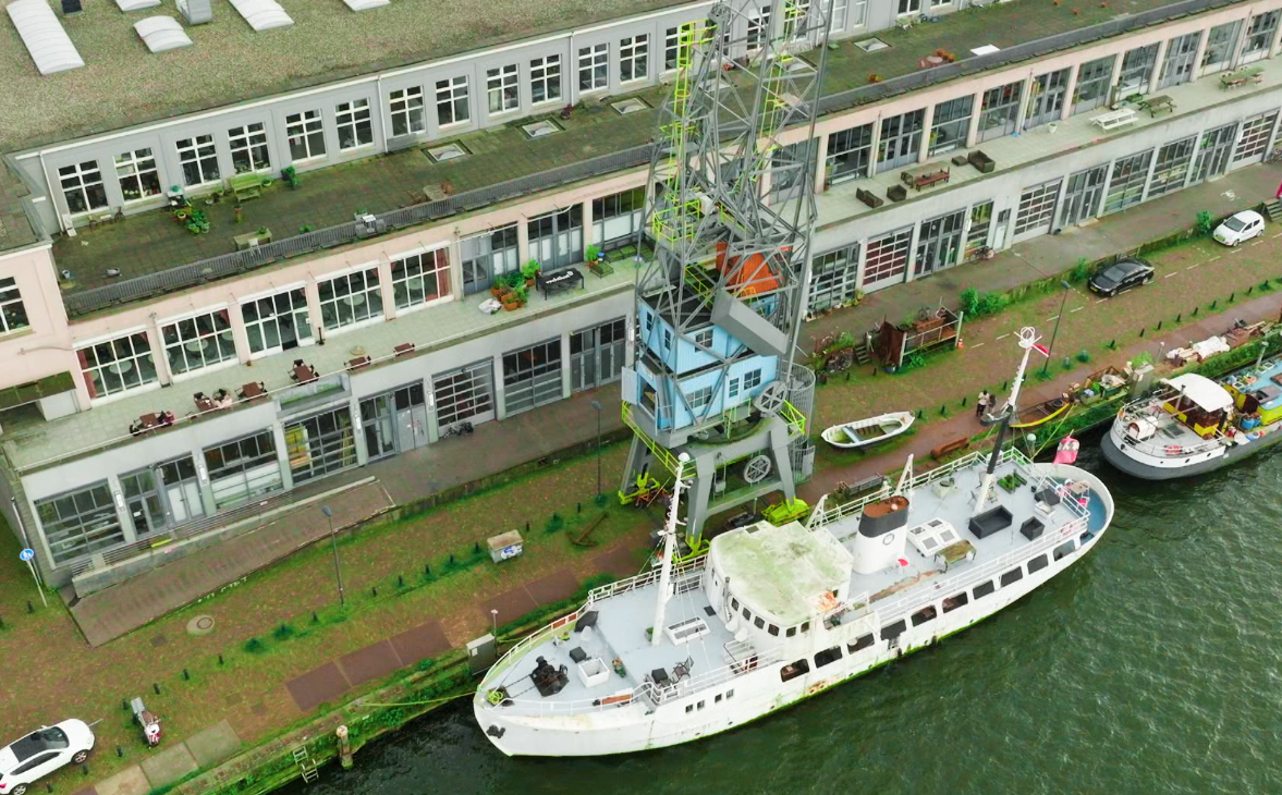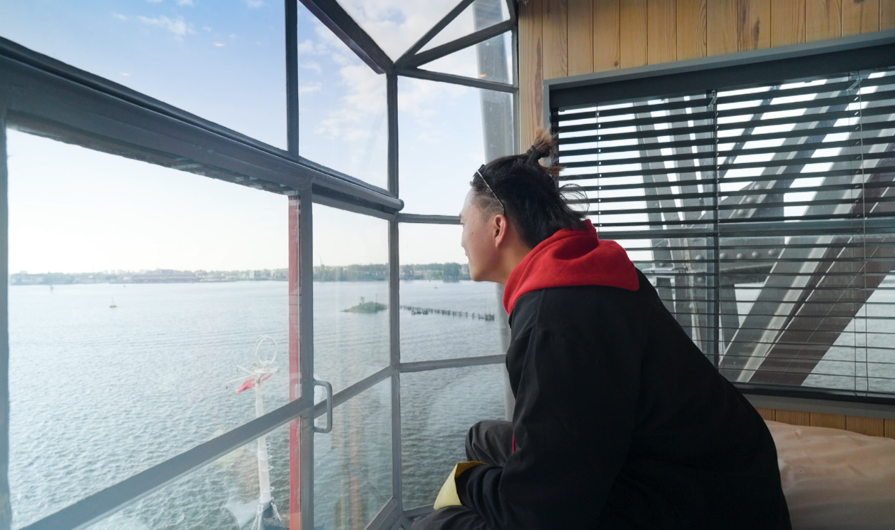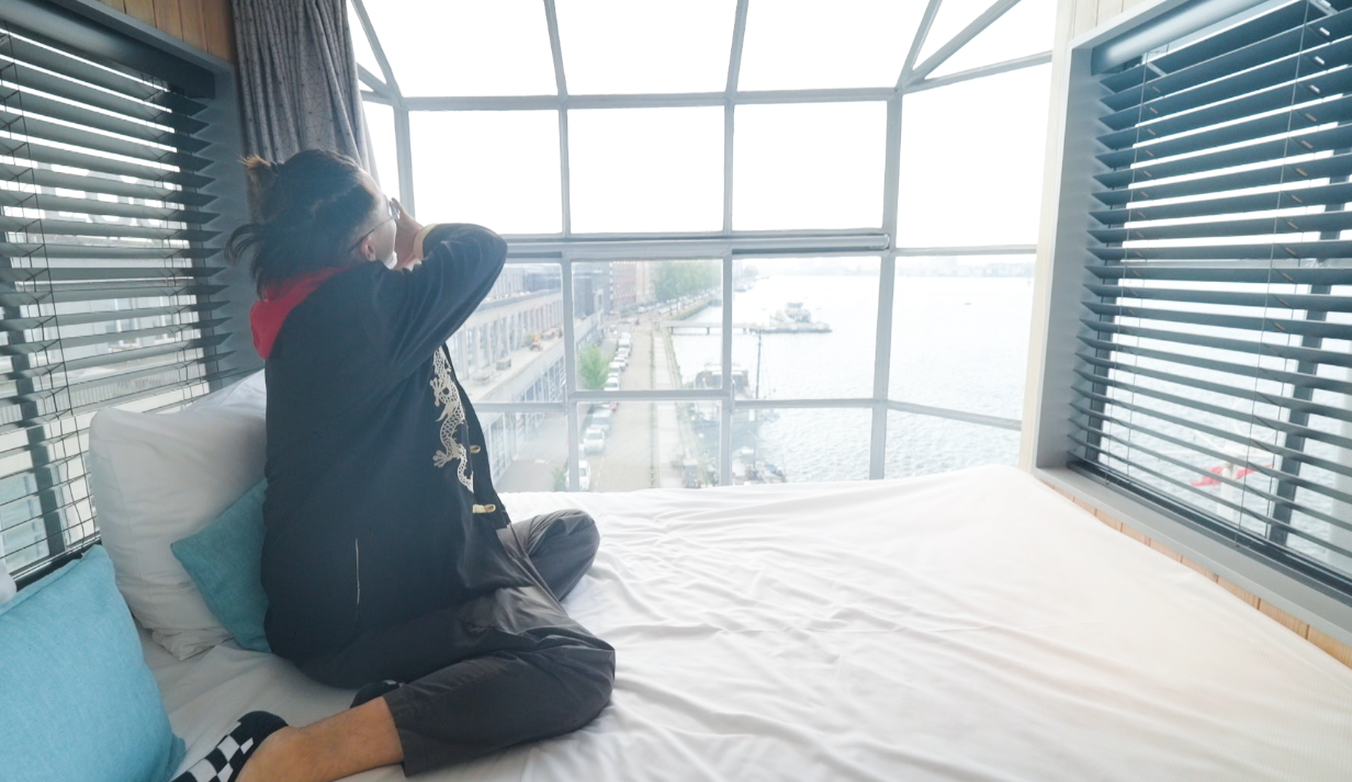 阿姆斯特丹水道及碼頭多不勝數,另一個奇特住址便是由廢舊起重機改建而成的「吊臂酒店」。一個吊臂分為三層,由下至上分別是客廳及兩個海景房,空間不大但五臟俱全,尤其是第二層的超大浴缸令Liamy非常驚喜,而最頂層的房間,無敵的視野,由天空至阿姆斯特丹海景無阻擋的海景,再加上工業風,別具一番風味!
