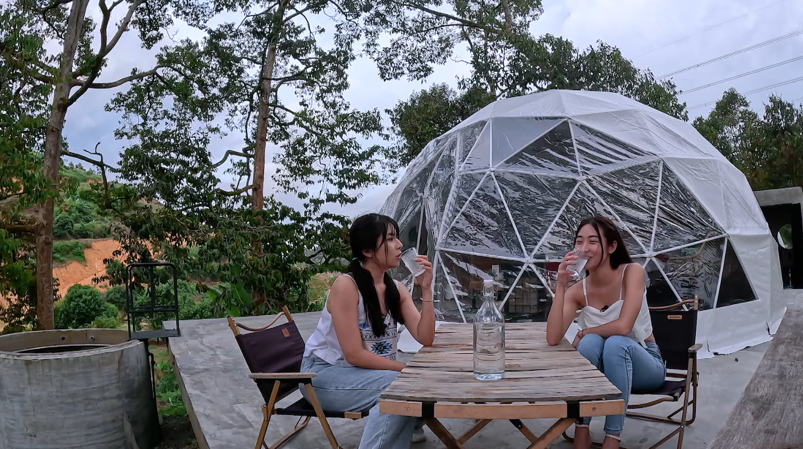 二人繼續來到酒店的水晶球帳篷,透明的天幕令客人可以進一步親近自然,所有露營用品一應俱全 ,更有撒滿花瓣的露天風呂,相當浪漫。今集最後,JoJo與Jessye還大玩飛索,做穿梭於森林的少女!