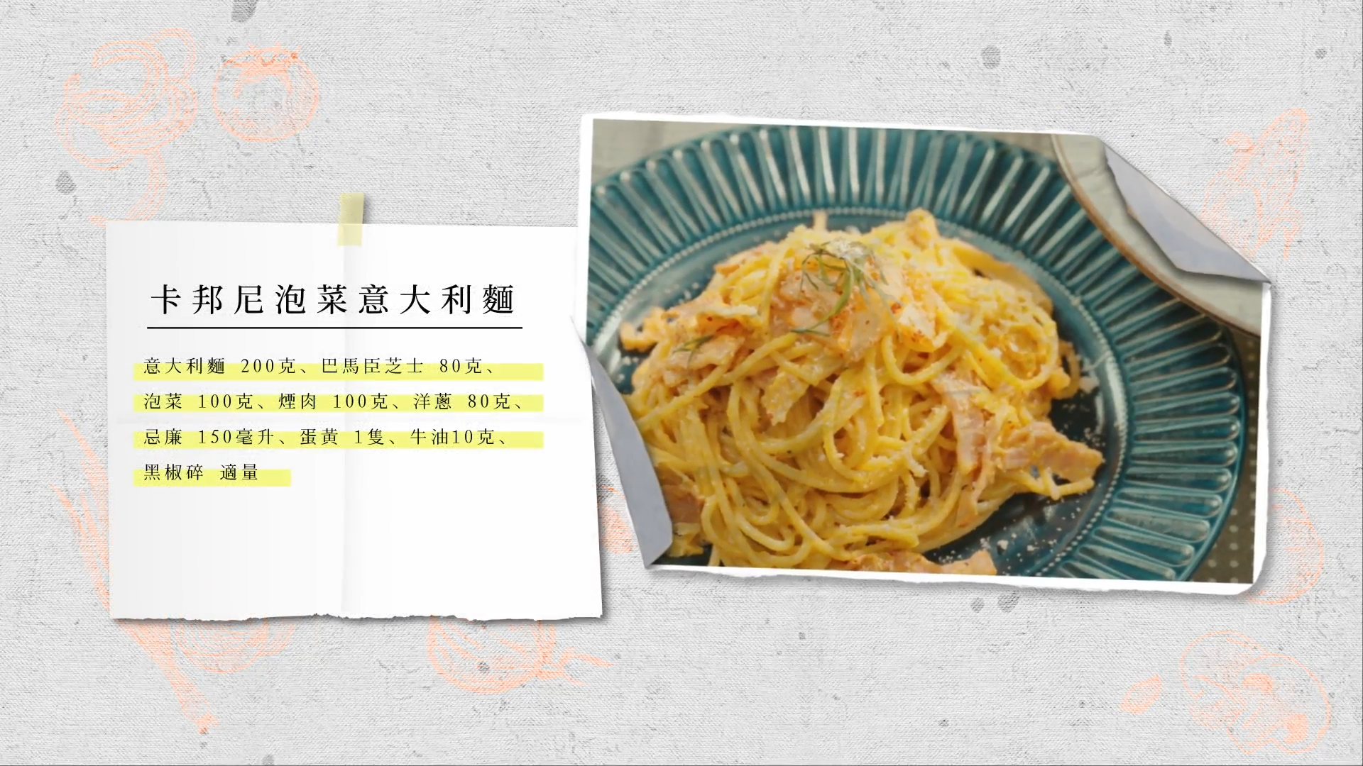 卡邦尼泡菜意大利麵
