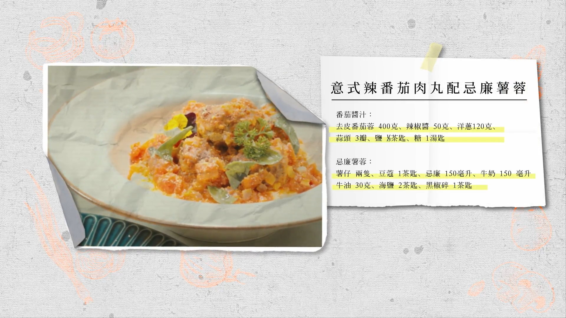 意式辣蕃茄肉丸配忌廉薯蓉食譜:意式辣蕃茄肉丸配忌廉薯蓉