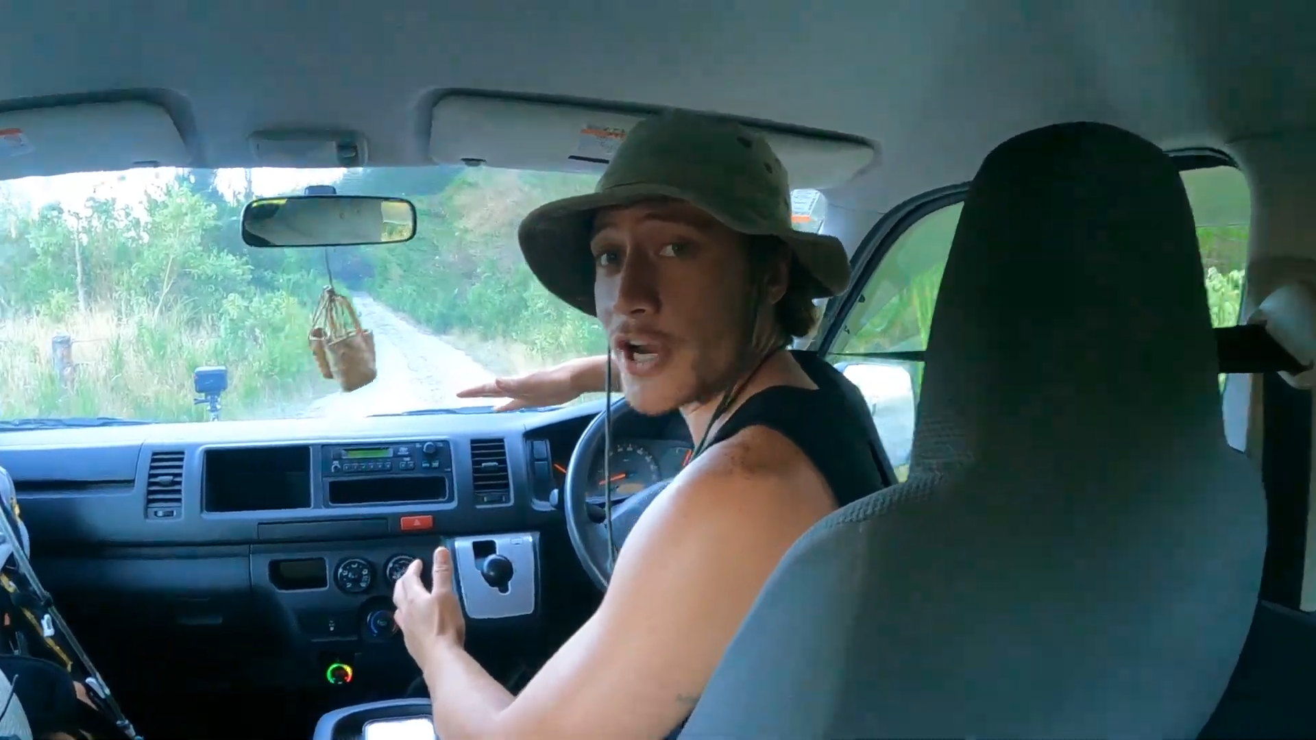 Mt Tarawera是屬於毛利人很重要的聖地,亦為隱世秘境,所以要找專業的嚮導陪同,登山嚮導Jesse在接載她們後,作出簡單介紹,並在正式駛上山前,提醒因為山路崎嶇,如果感到不舒服或暈車可以出聲。結果真的如他所說,Jessica大叫「醒哂」又指似坐過山車。而Honey在途中忍不住說自己不太舒服,要求調位至駕駛座旁位置。![]()
