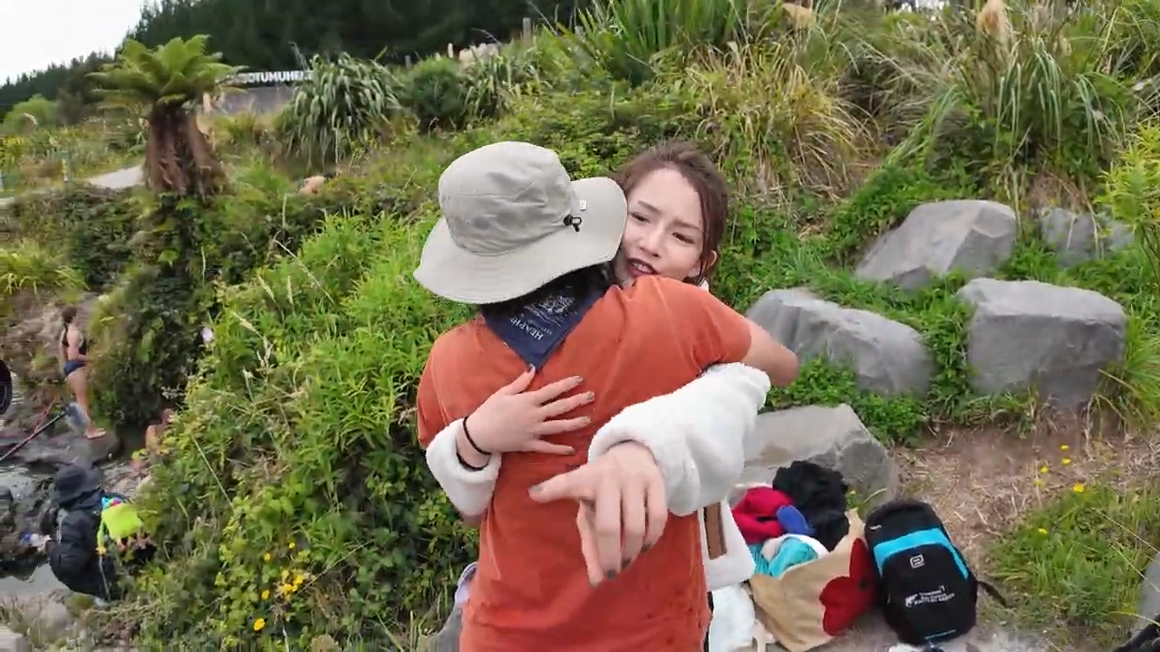 當確認自己真的到達後,即換衣服去浸温泉。她亦訪問了前往浸温泉的當地家庭。她得知原來因為這個温泉在公路附近,有些家庭可能駕駛了數個小時,就會停在這裡浸温泉,之後再出發。![]()
