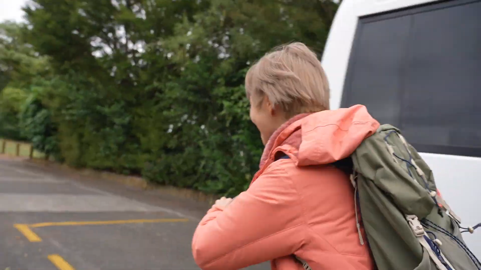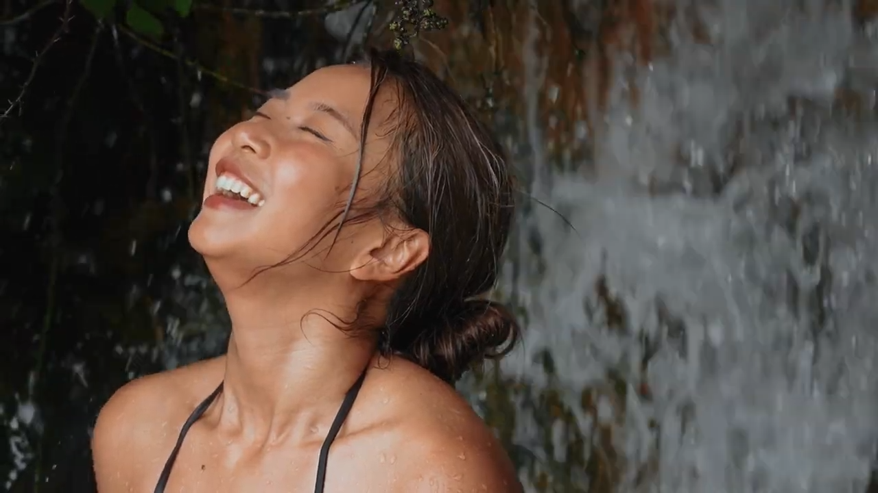 當她發現快到目的地時,甚至丟下攝影師,自己高速跑到温泉。