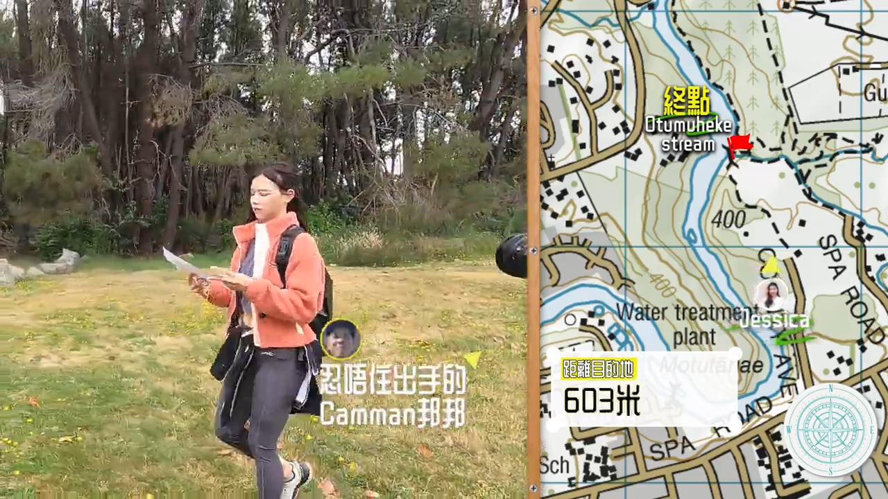 於是,製作組給她們地圖,並告知目的地,要4人各自找路前往,除了地圖,製作組更有兩個指南針提供,Jessica及Amber即刻舉手示意自己需要指南針。Jessica表示:「Nicole最有信心,因為佢用感覺行事。」![]()